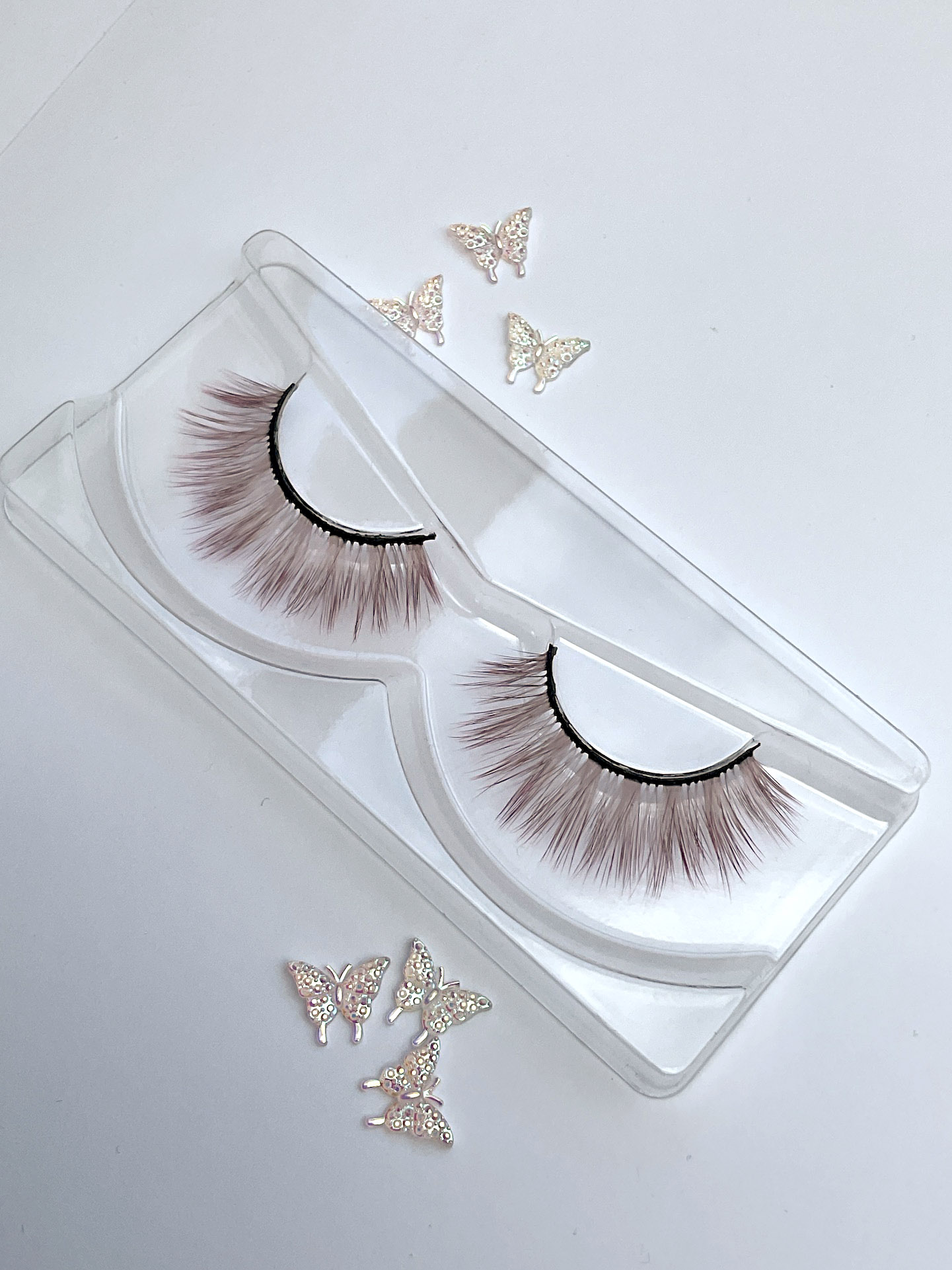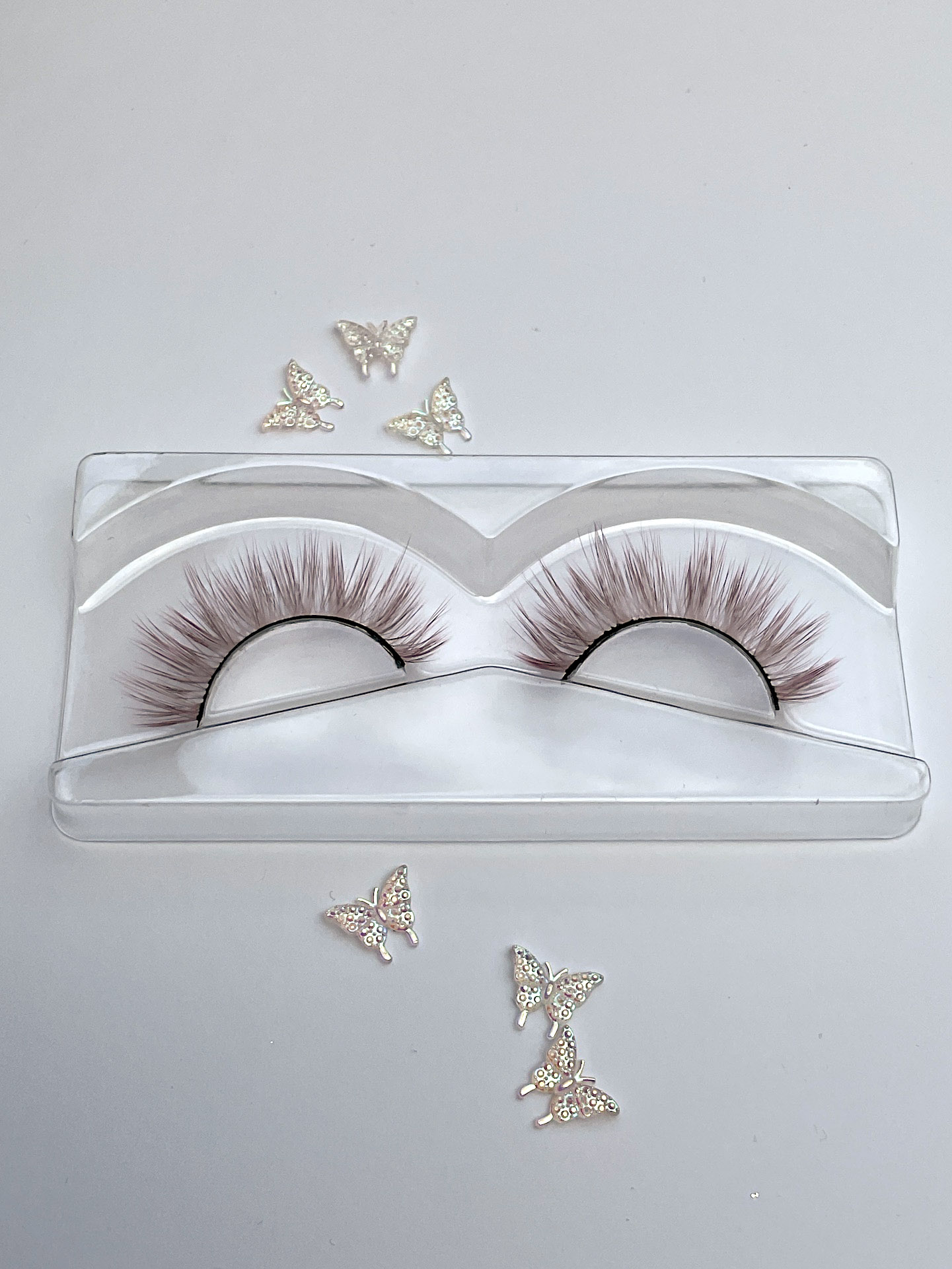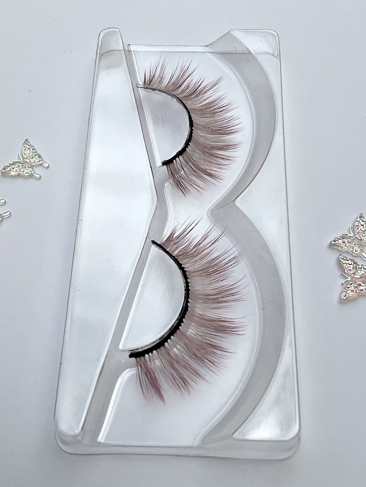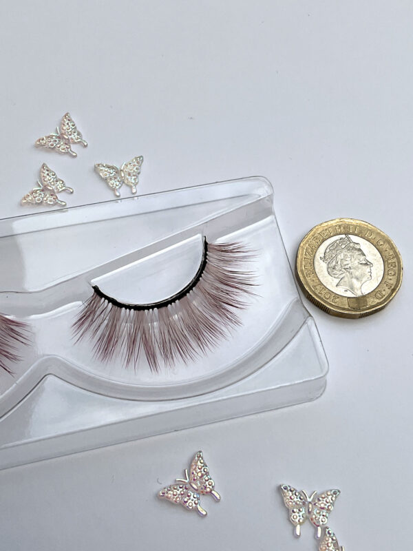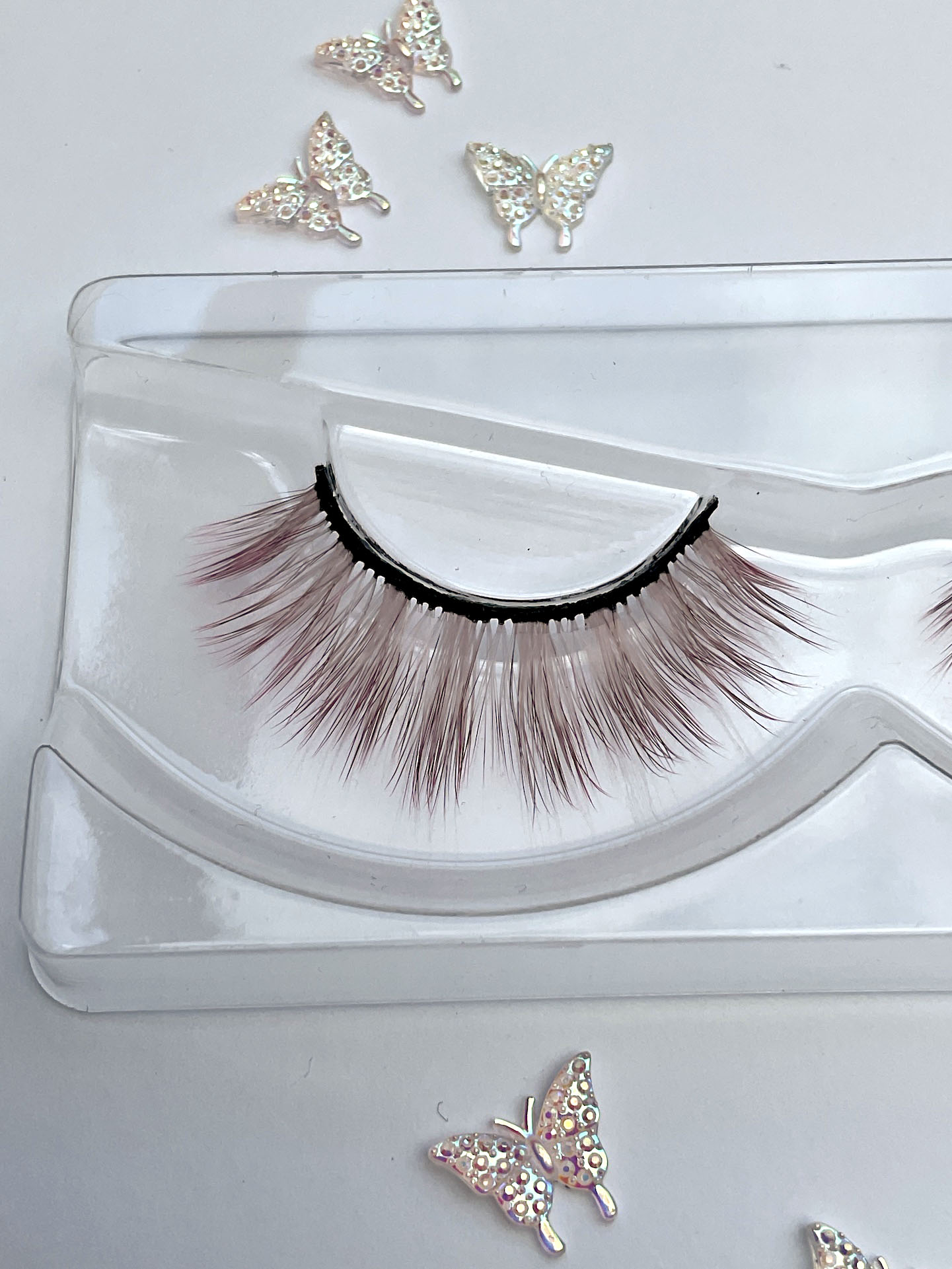 This is Bashful. She is a smaller set of ombré lashes, in off white into pale mauve violet tips, a great contrast lash.