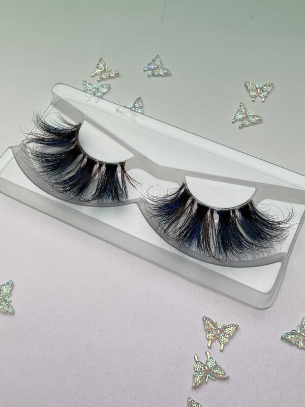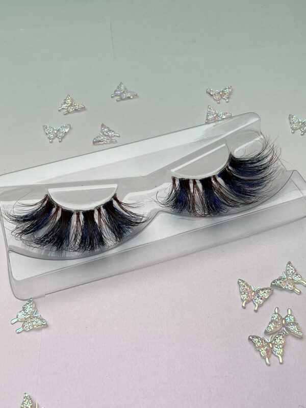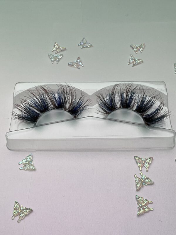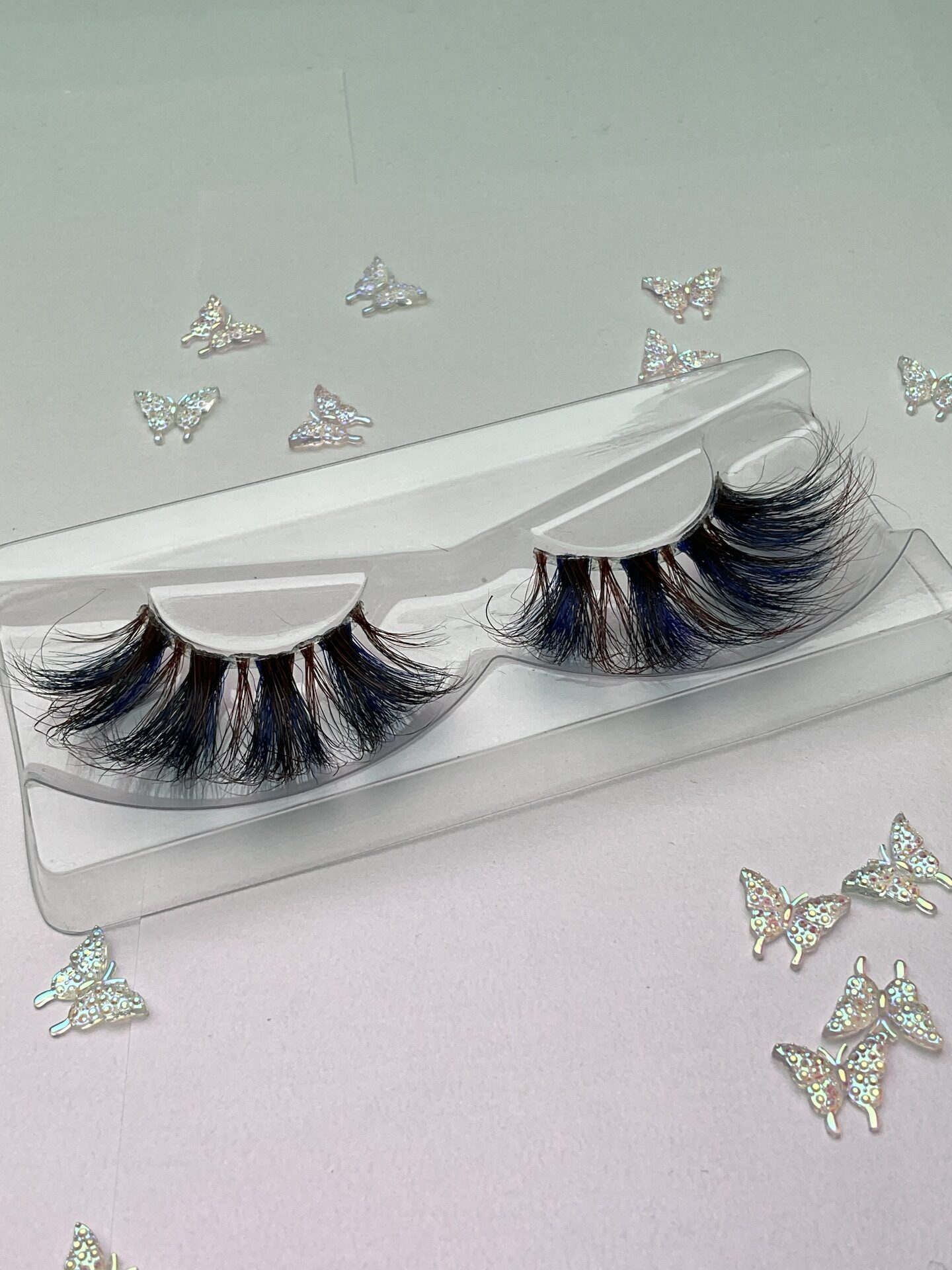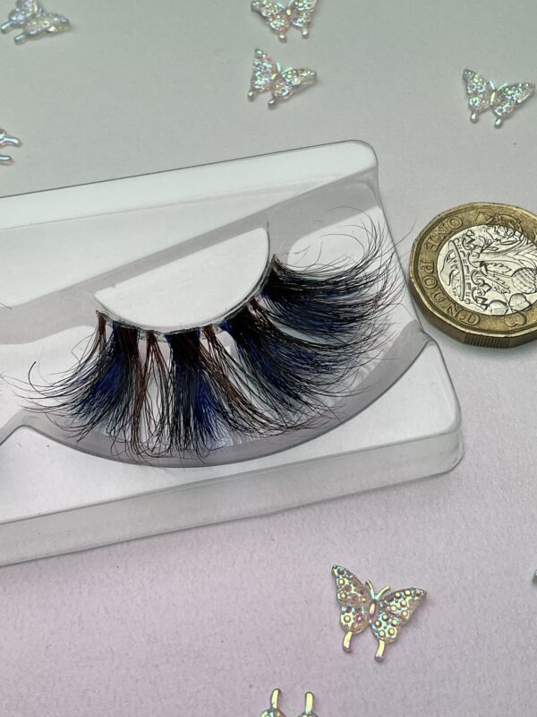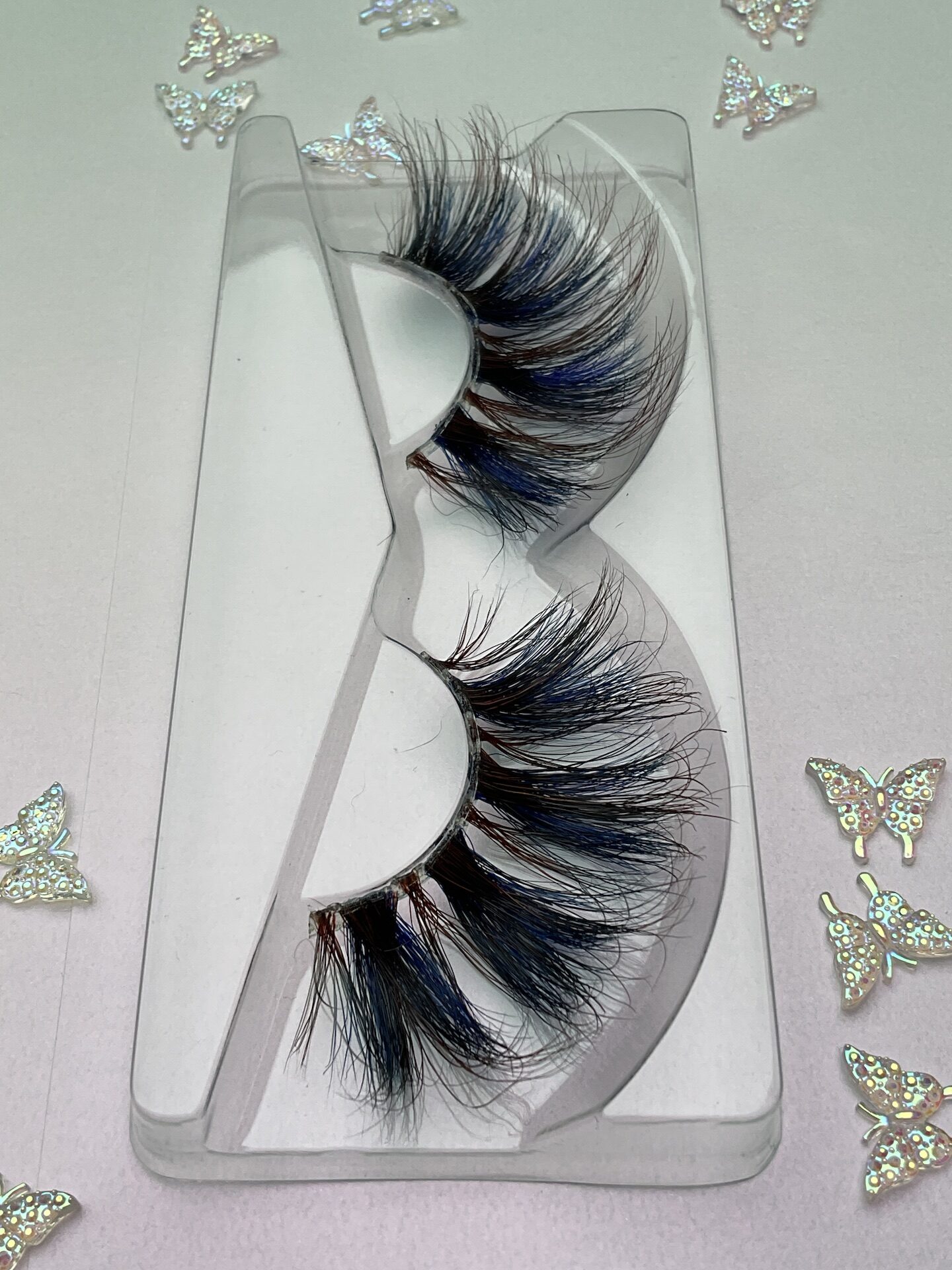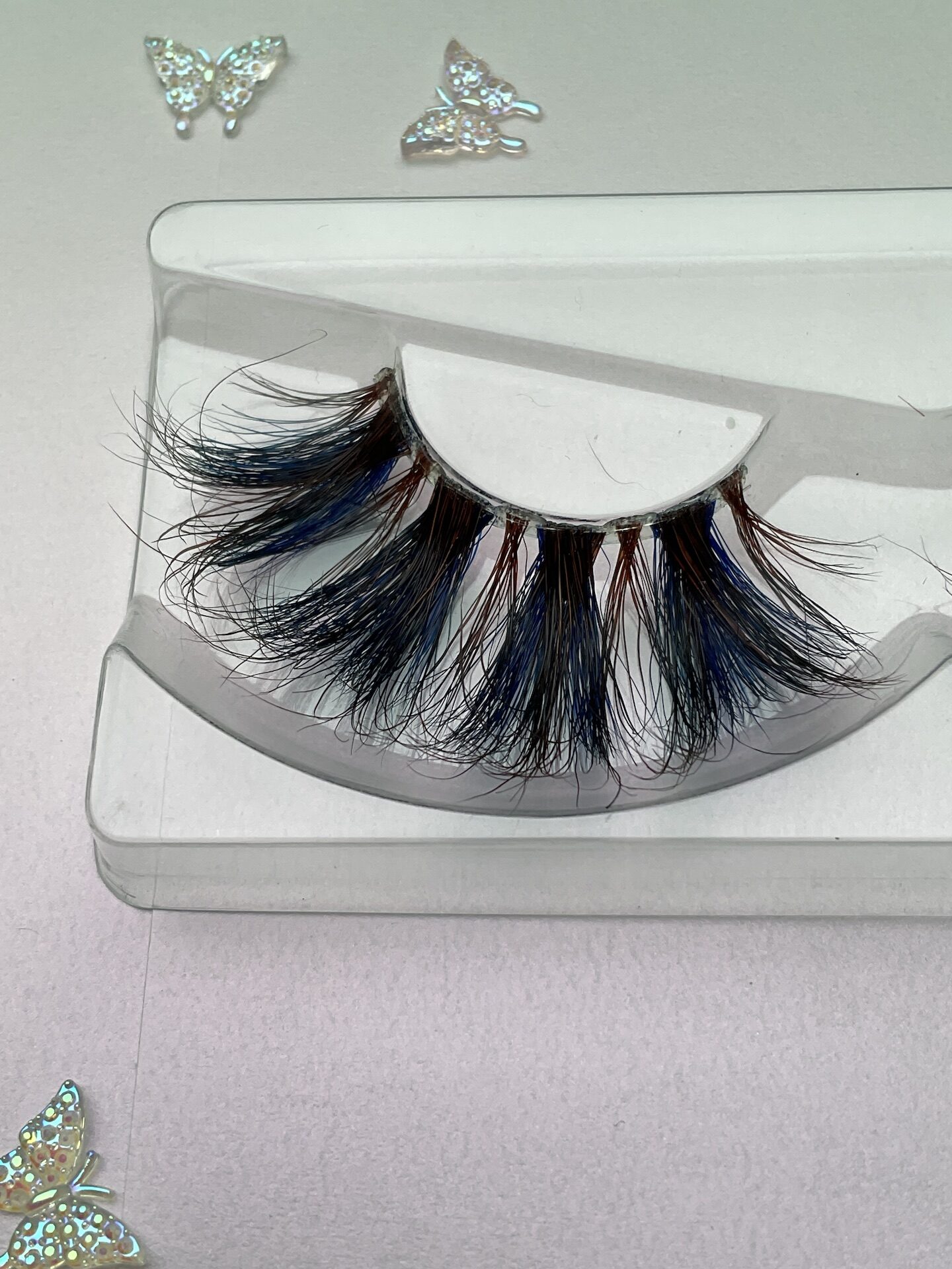 This is Bella. She is a stunning brown and royal blue lash, in alternate streaks.