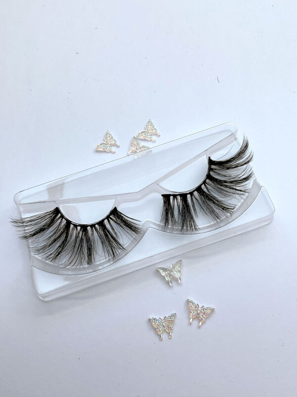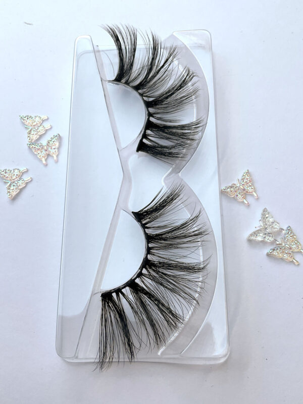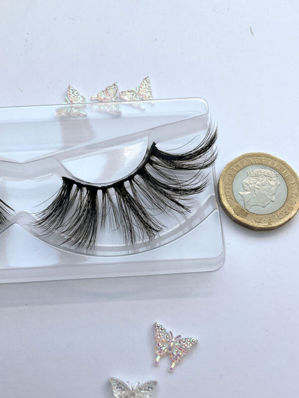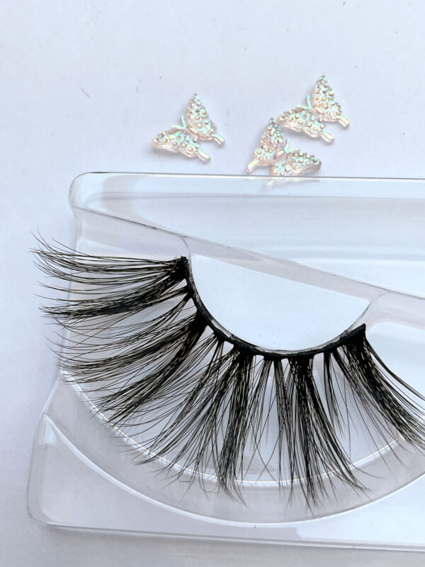 This is Bernadette. She is a 25mm long spiky black lash for added flair. Long with drama, not for the shy!