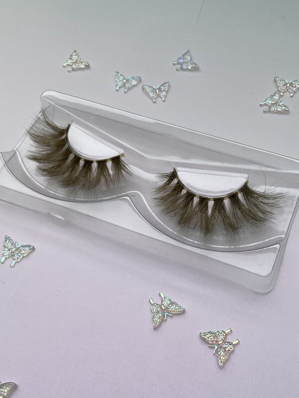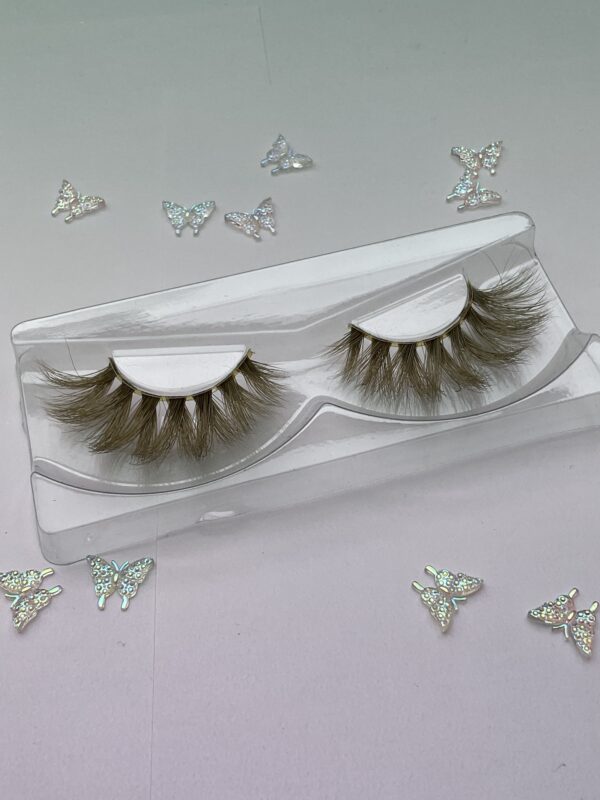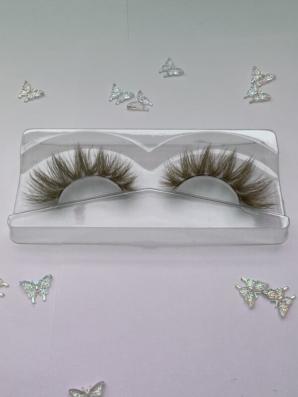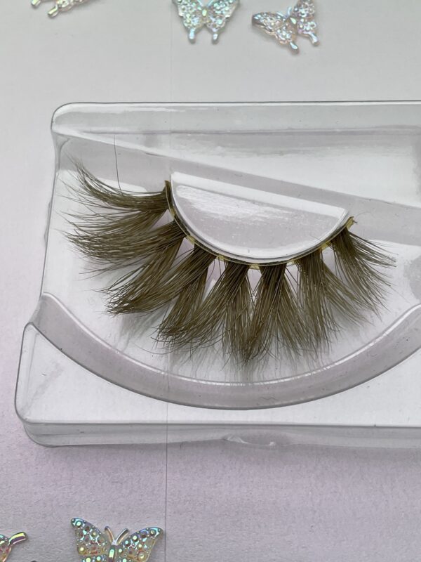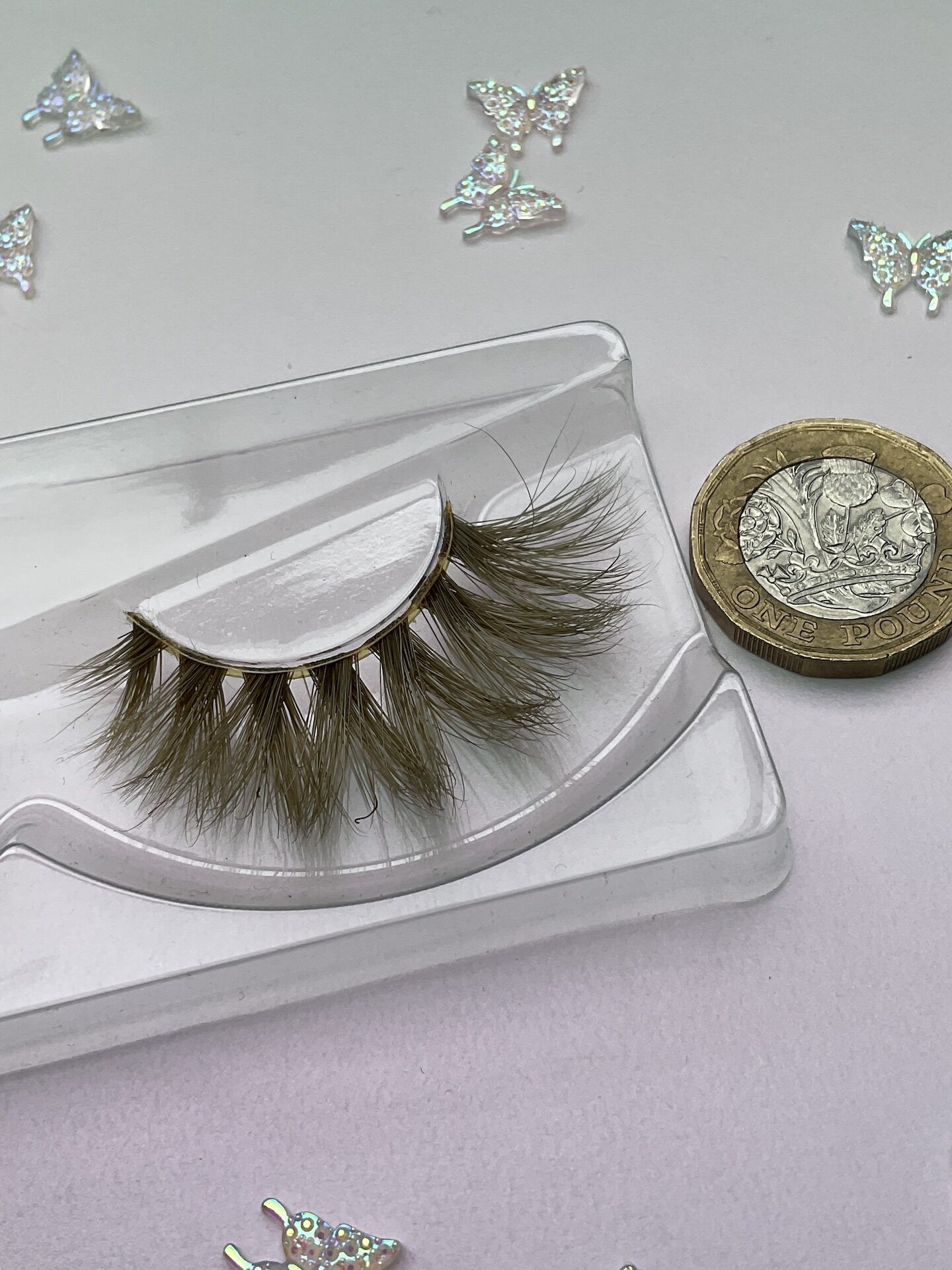 This is Bernice. She is a pretty pale ash blonde lash, a great contrast lash, fab worn with ash blond or light brown hair.