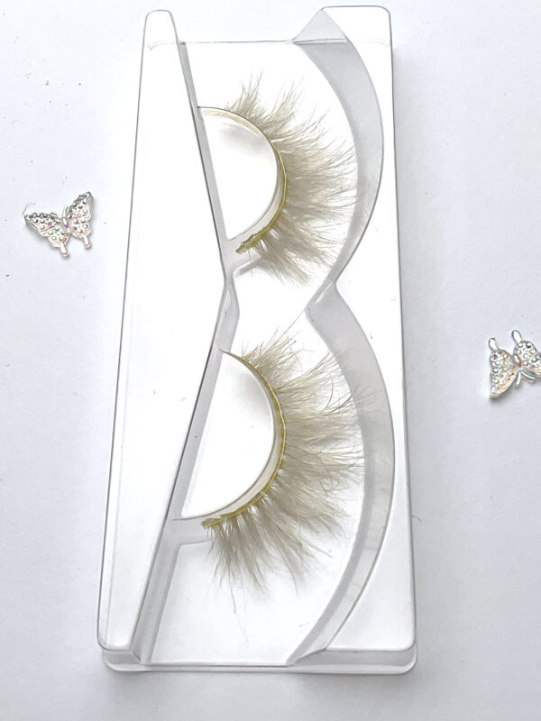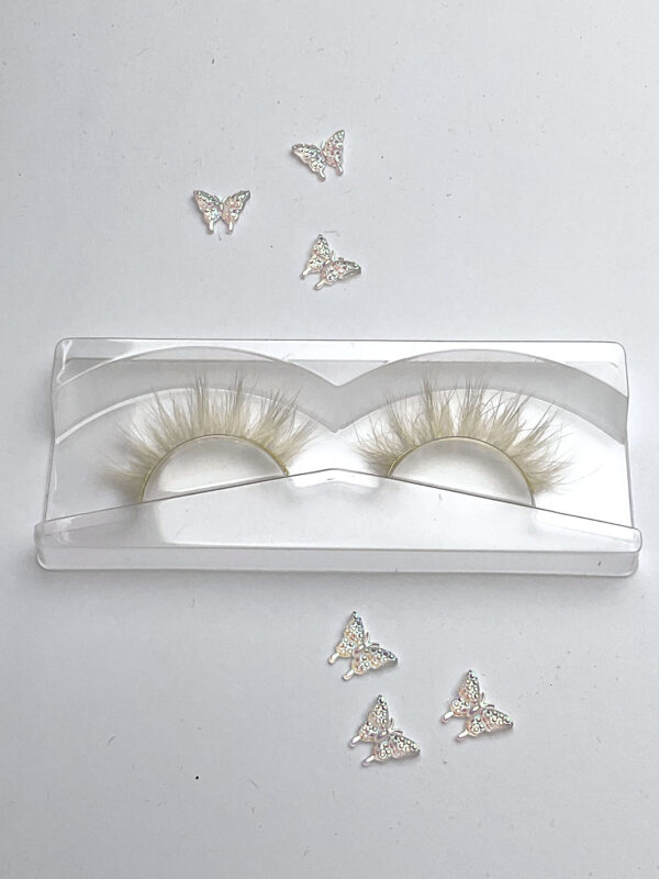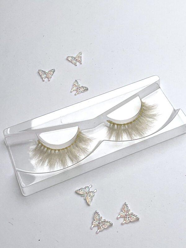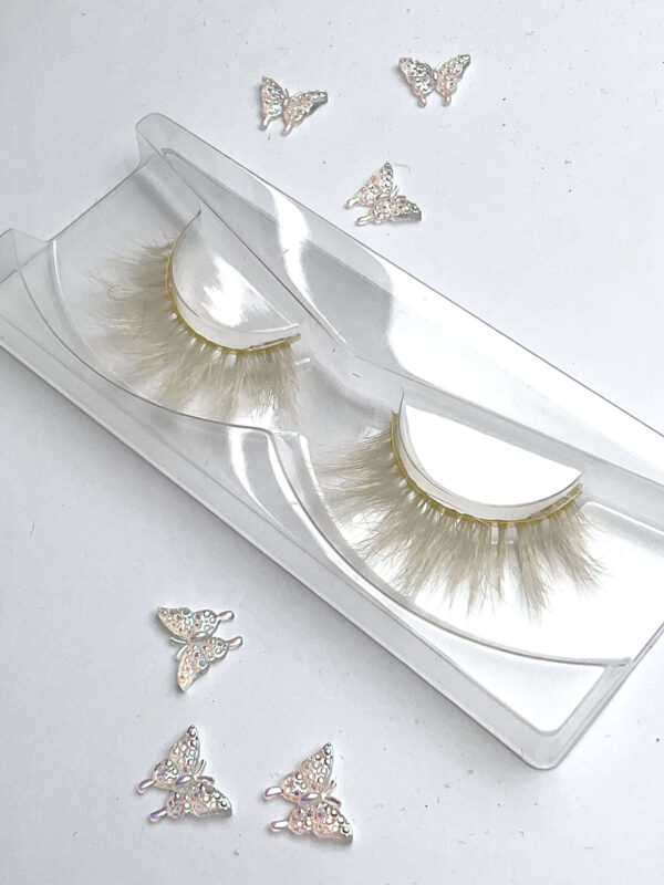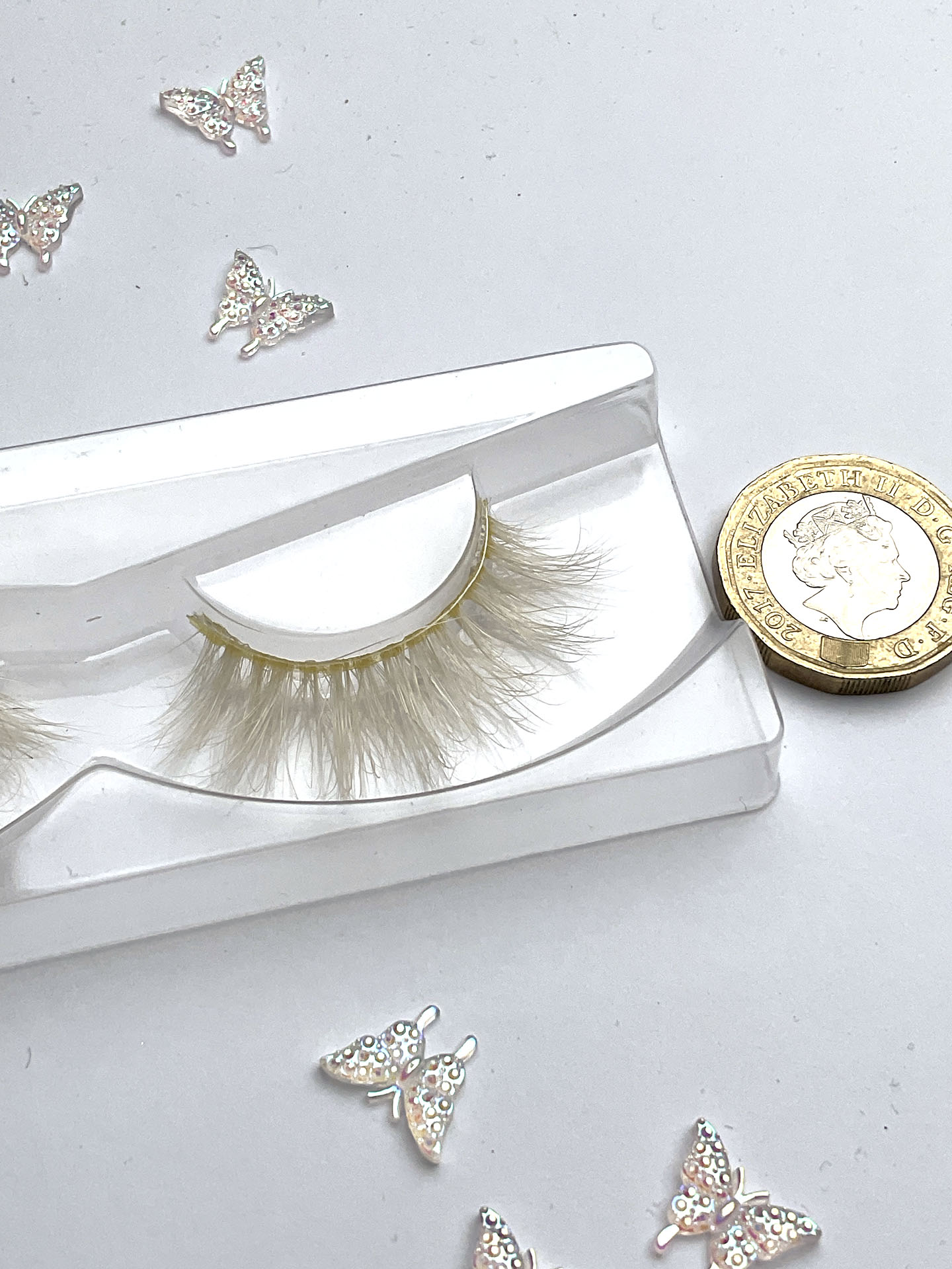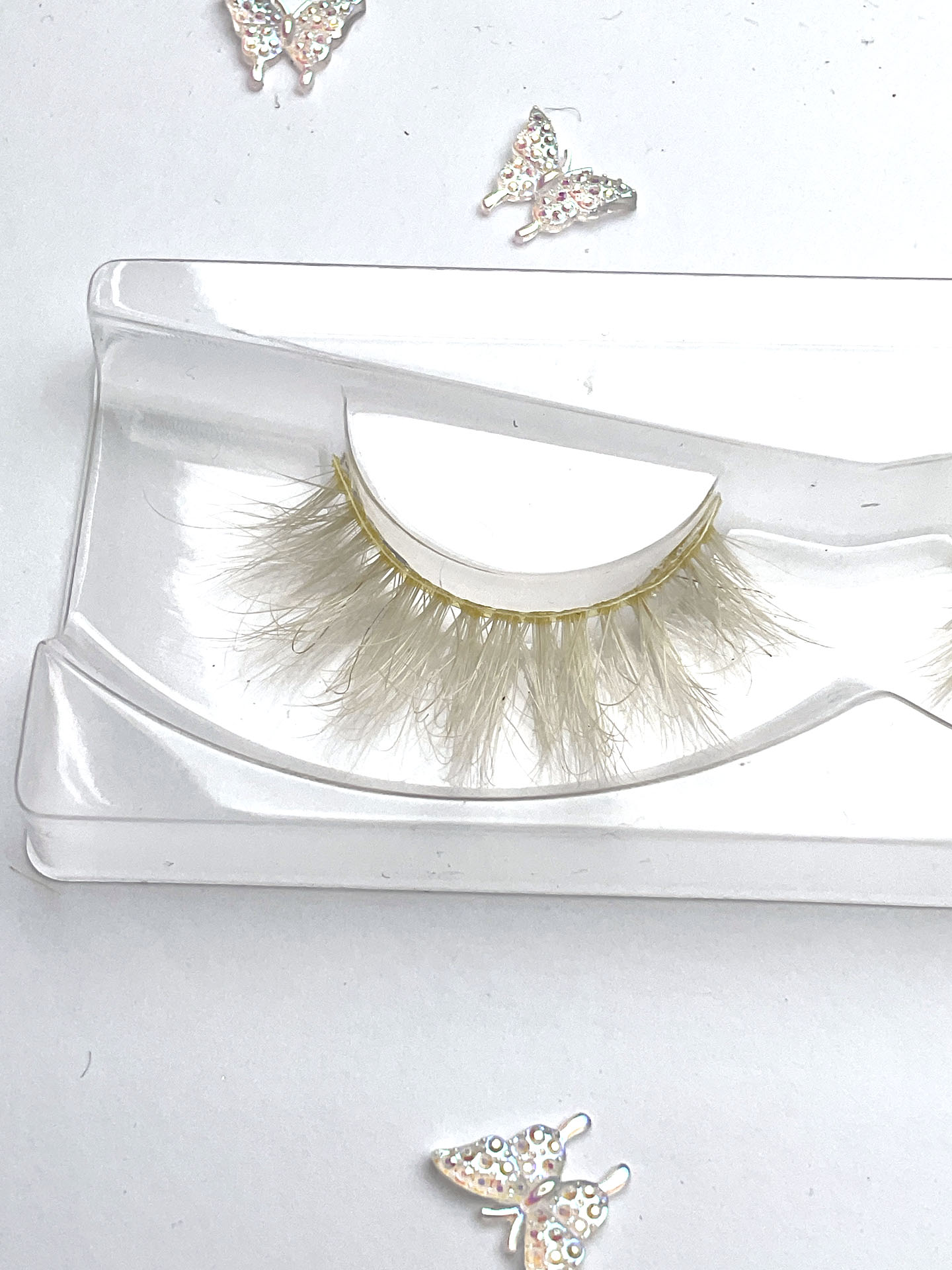 This is Blanca. She is a shorter pale off white lash, fab worn with blonde hair. It is similar to both the Blondie and Blanche lash. A true pale Scandinavian blonde lash.