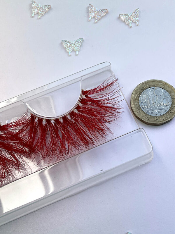 This is Britta, she is one bright pair of fabulous false jumbo lashes, in bright red.