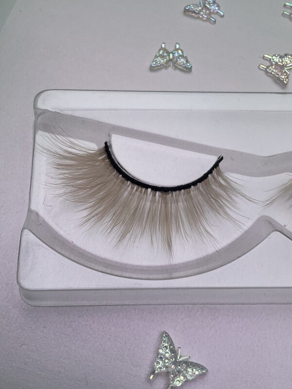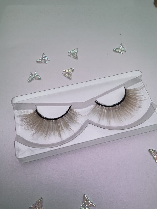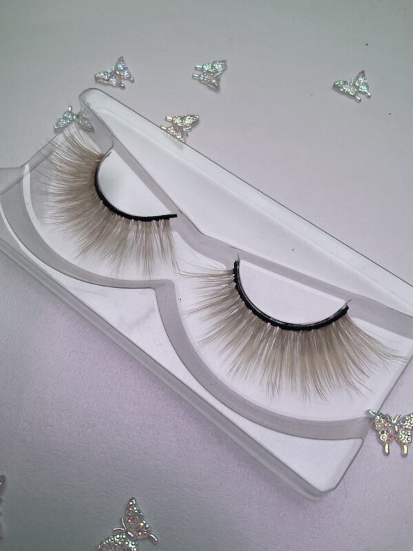 This is Chai Tea. She is a smaller set of two-tone lashes, in light caramel chai tea brown, hence the name! She is a great contrast lash.