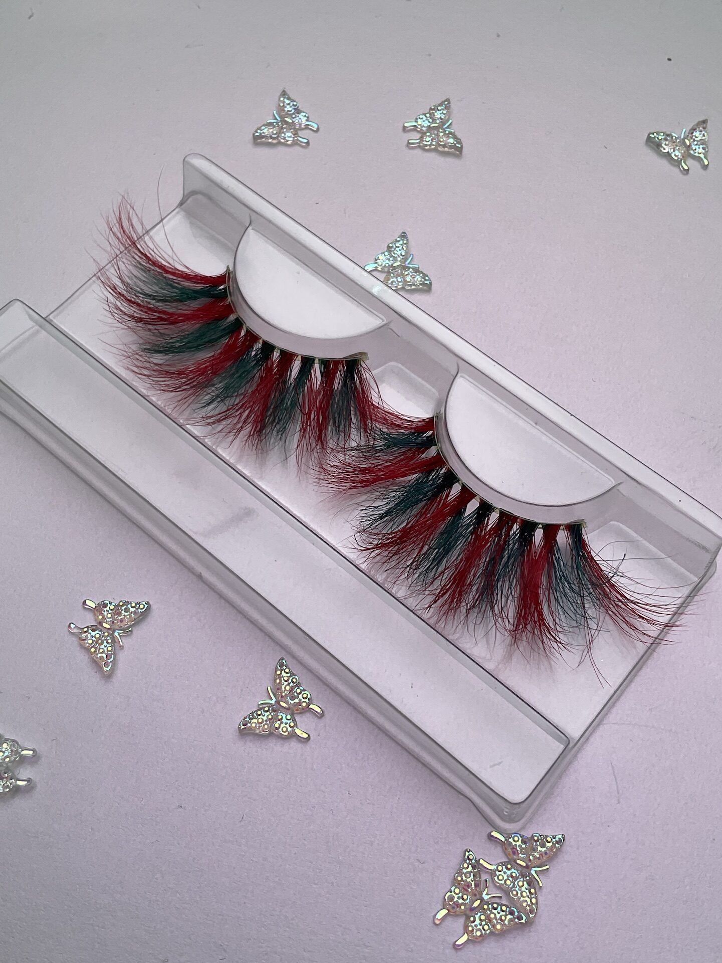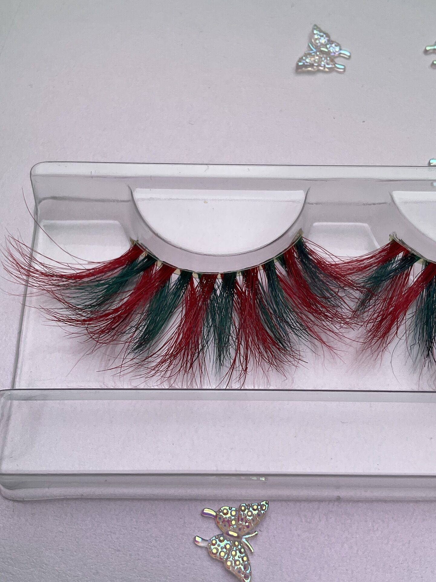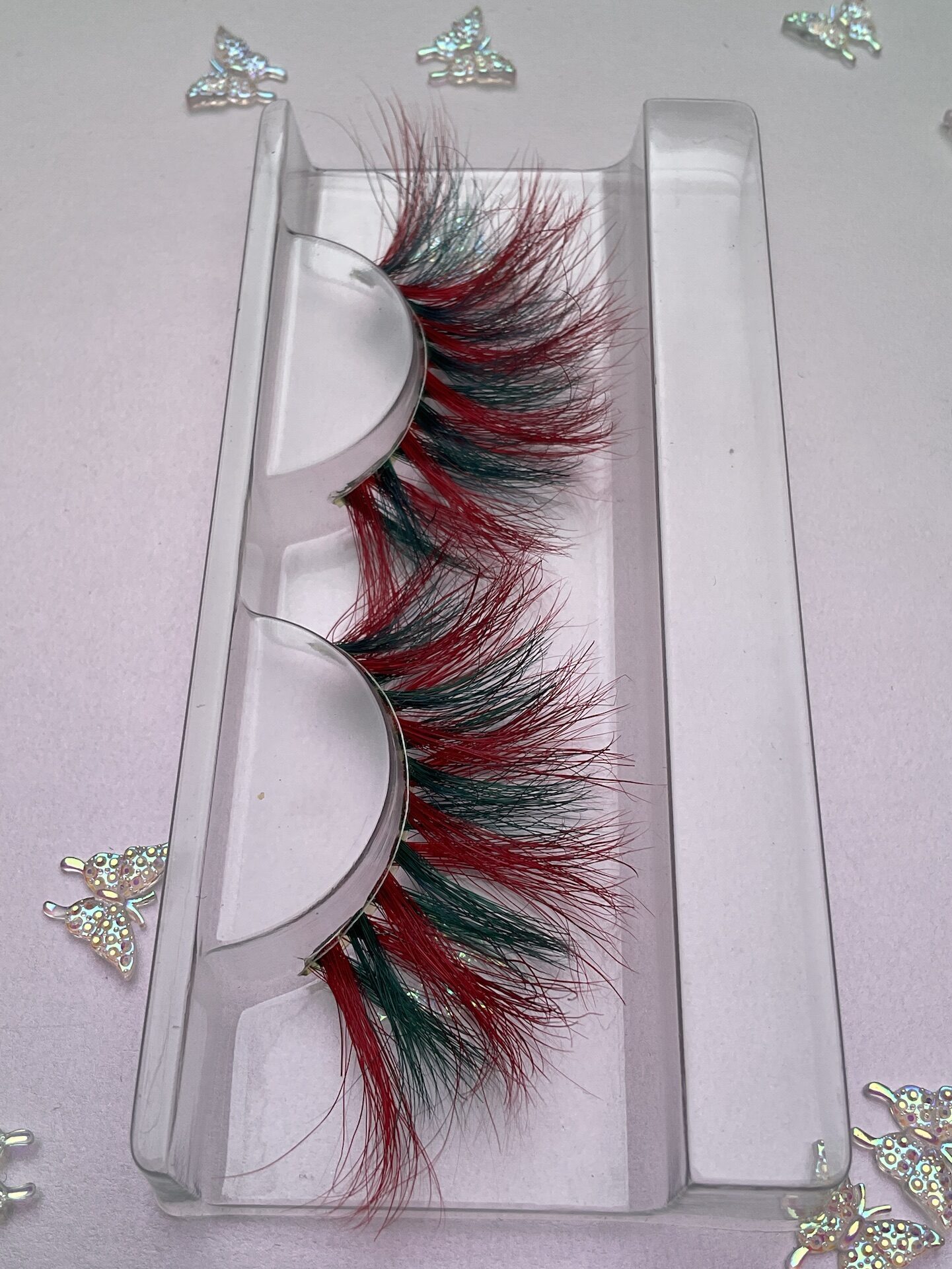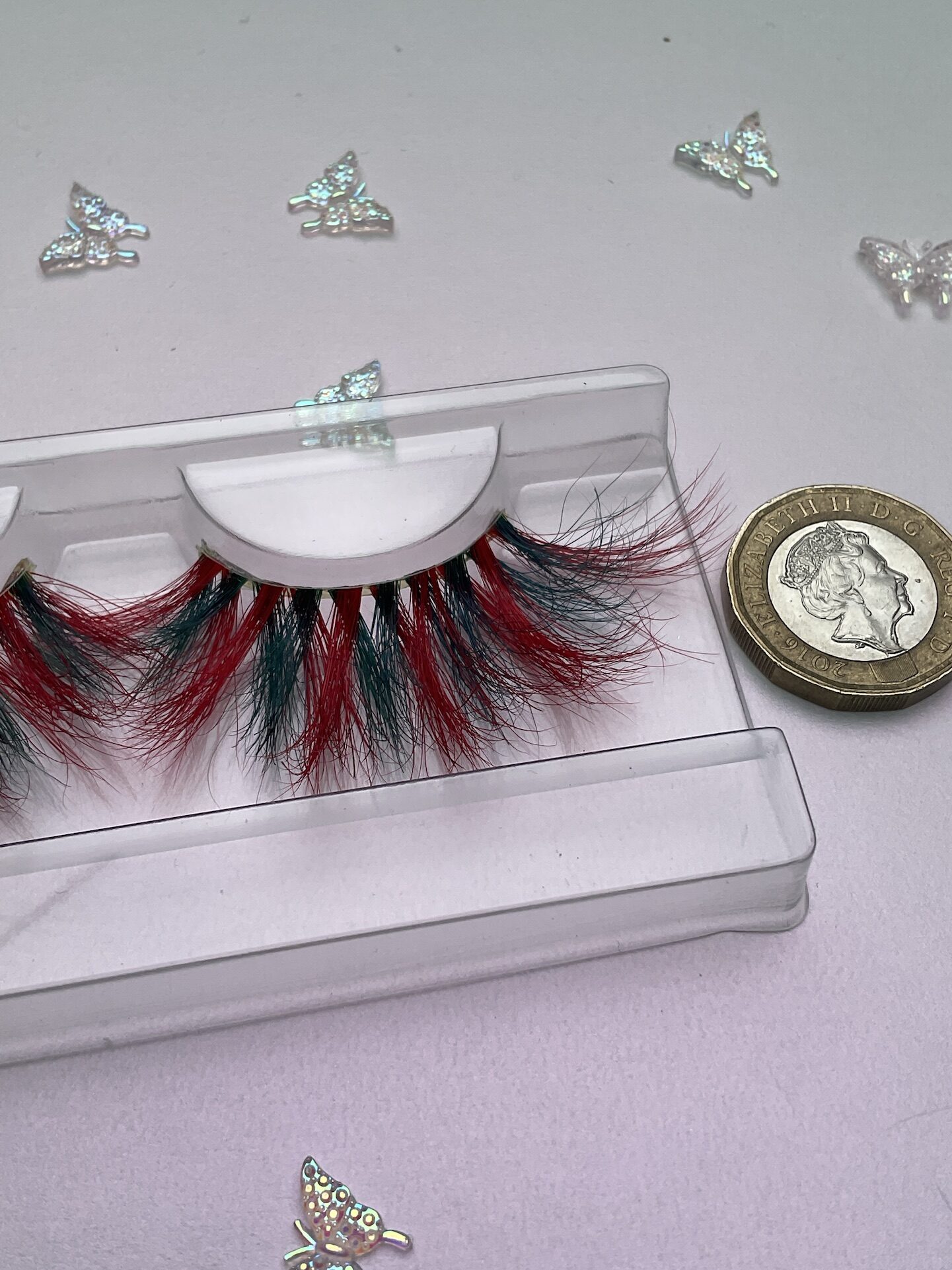 Christa Red and Green Stripe Jumbo False Lashes 25mm