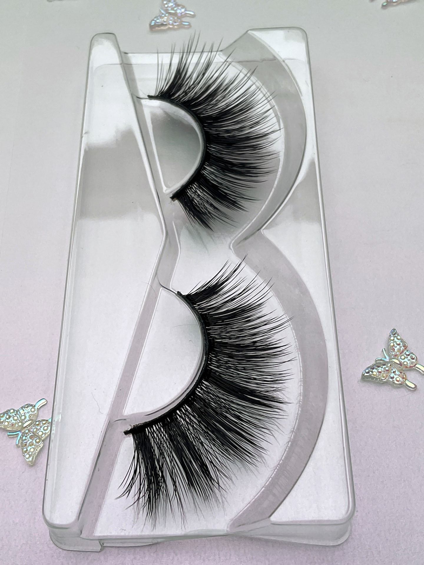 These are one pair of 15-20mm false eyelashes. Synthetic hair, hand tied on a thin black lash band.