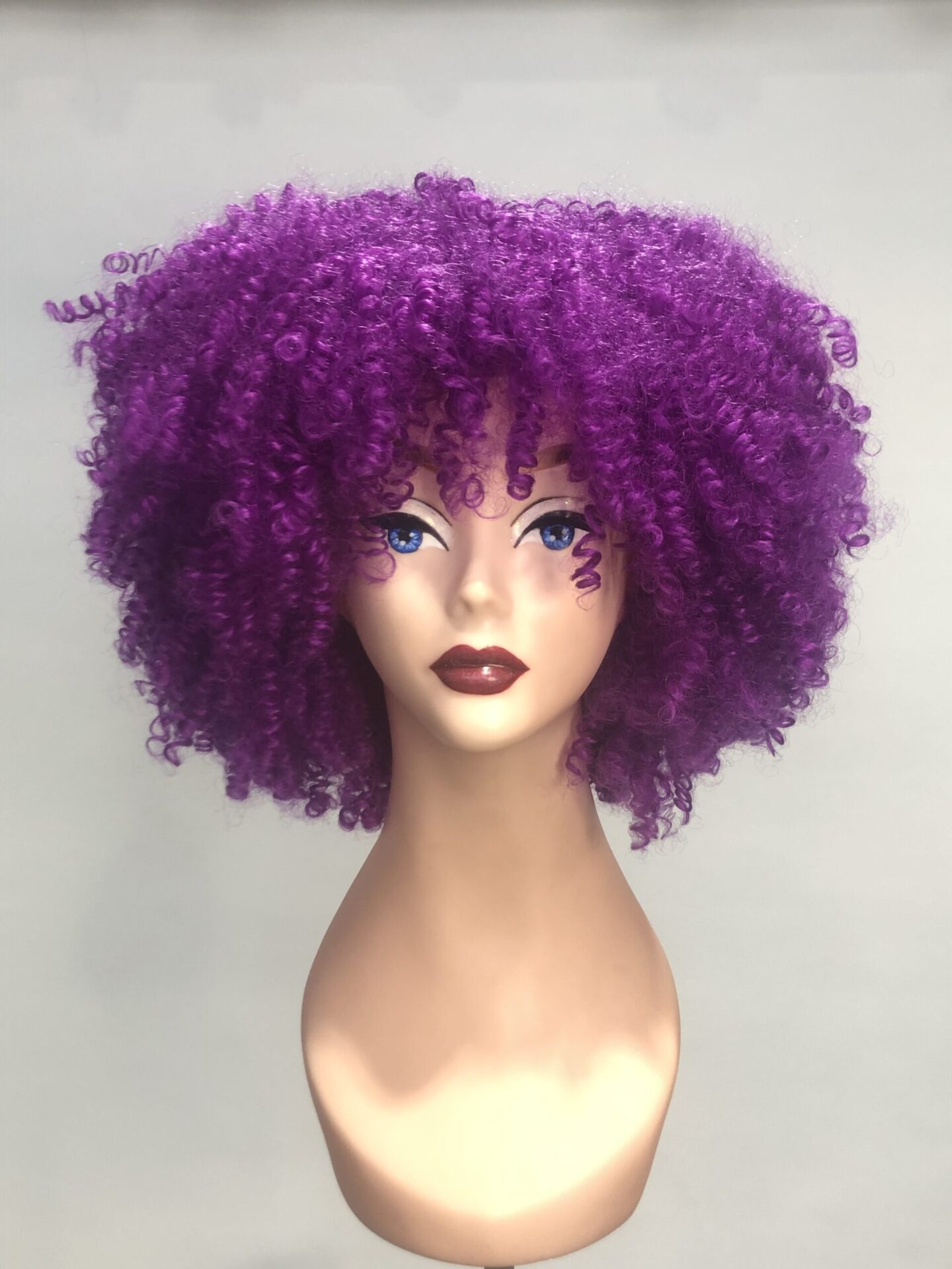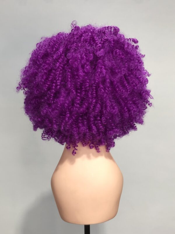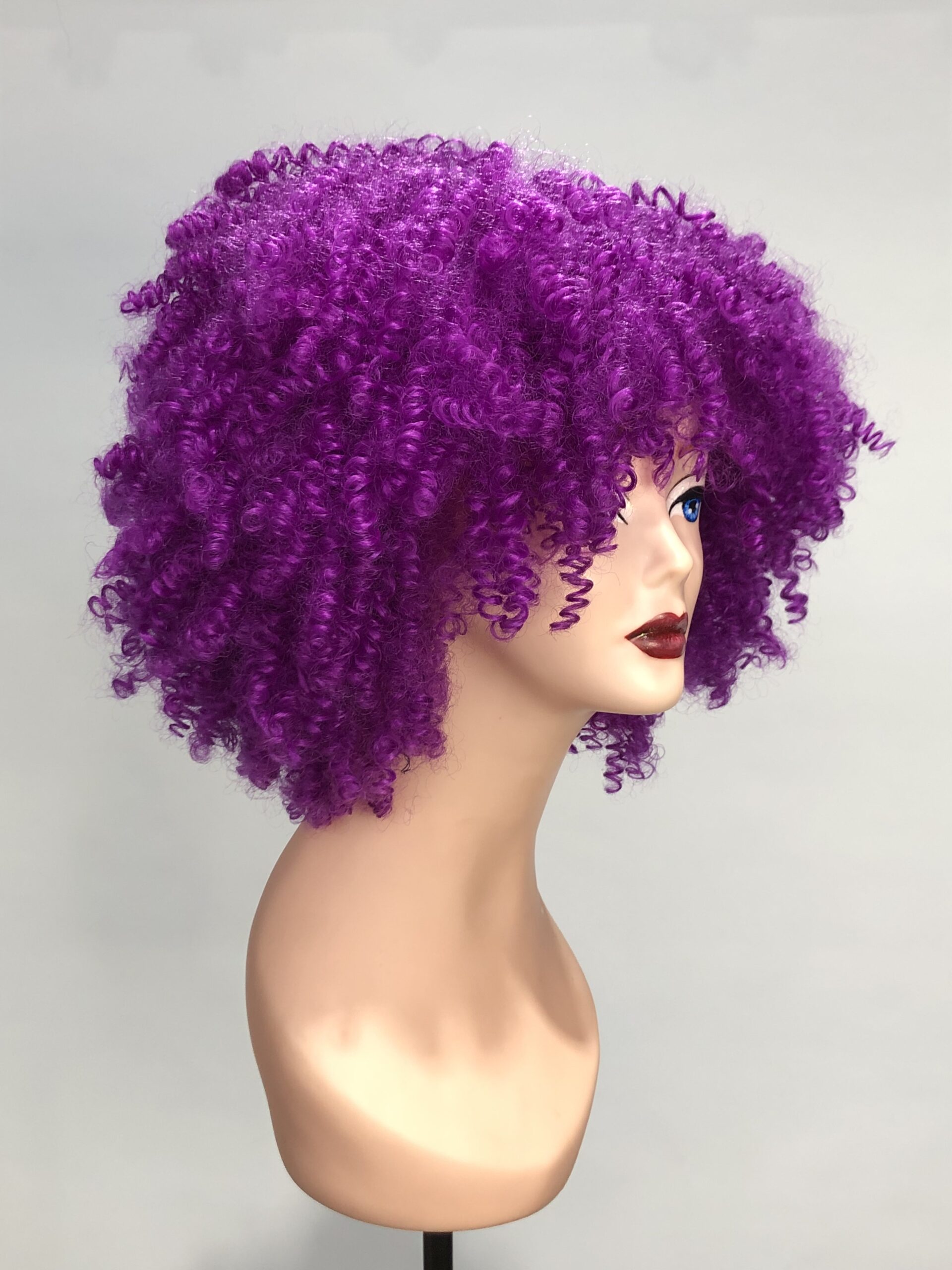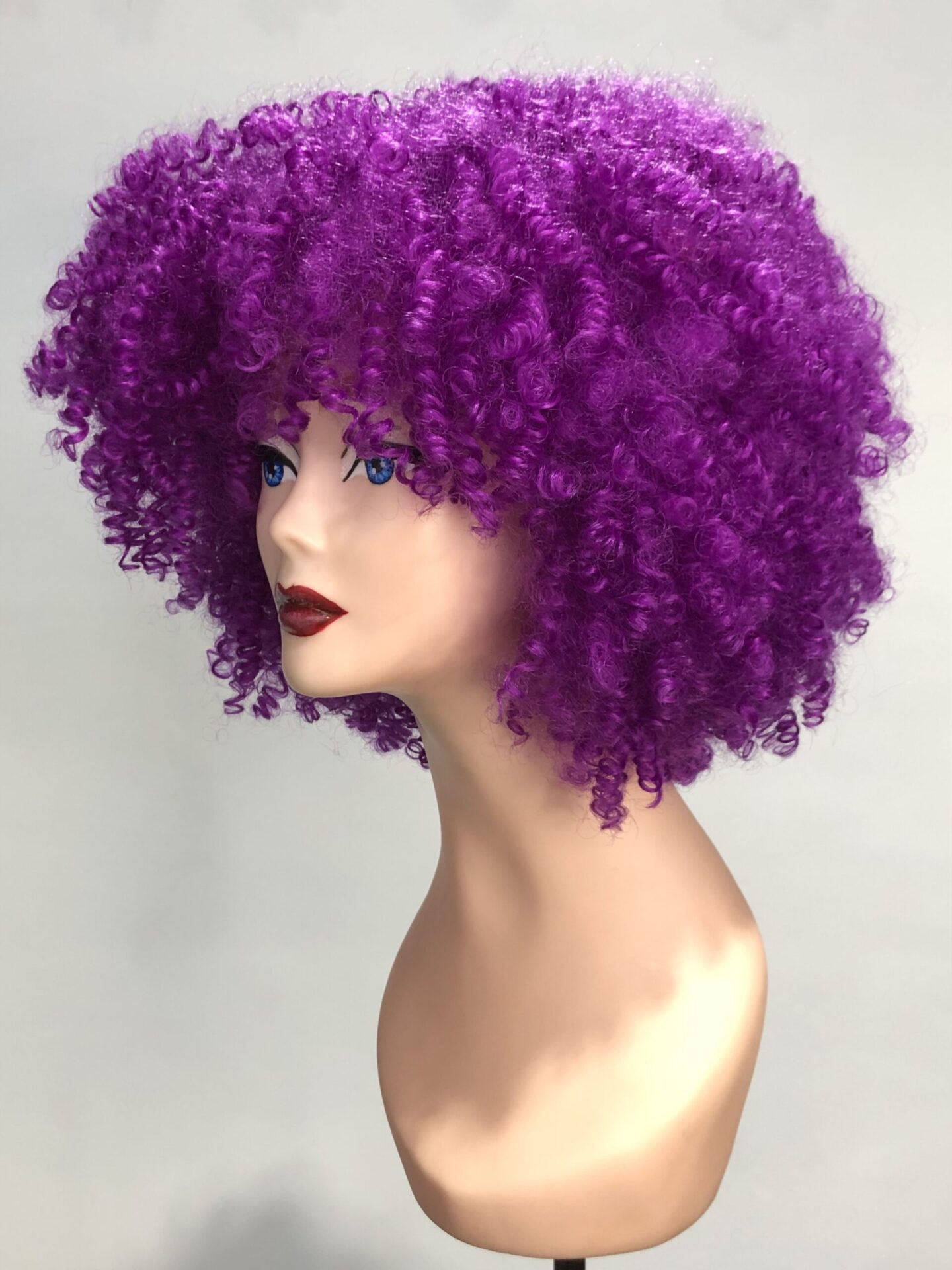 This is Disco Diva in Purple. She is a tight spiral curl in a vivid violet colour.