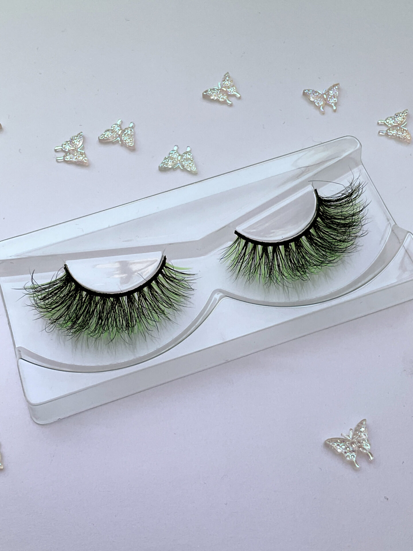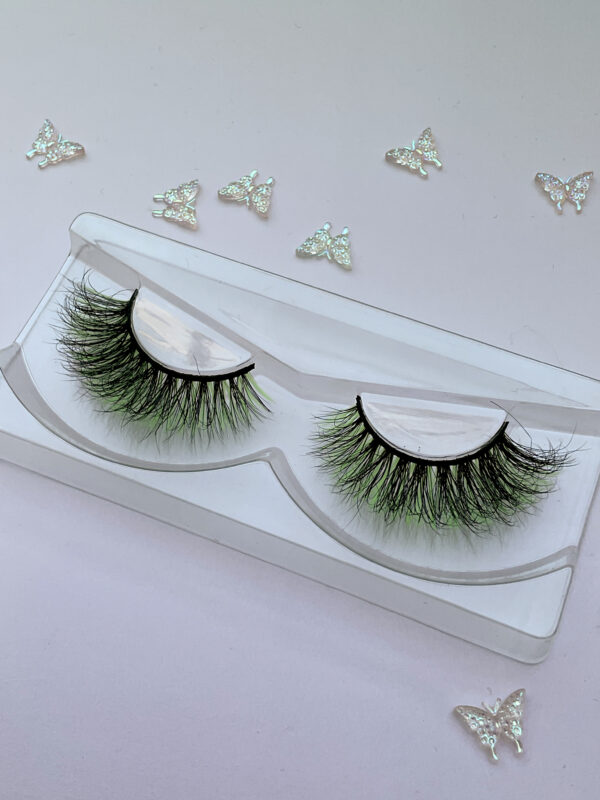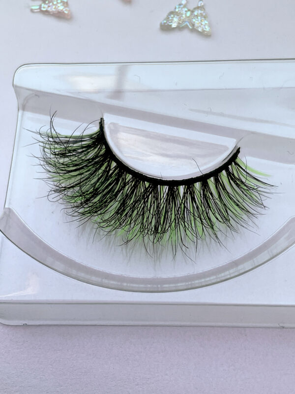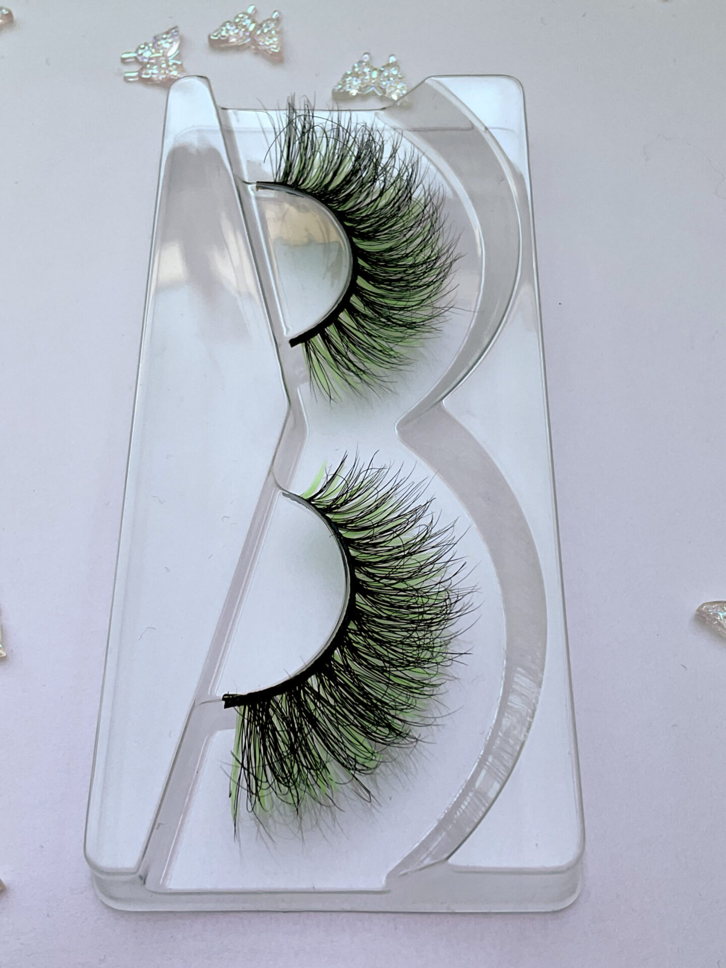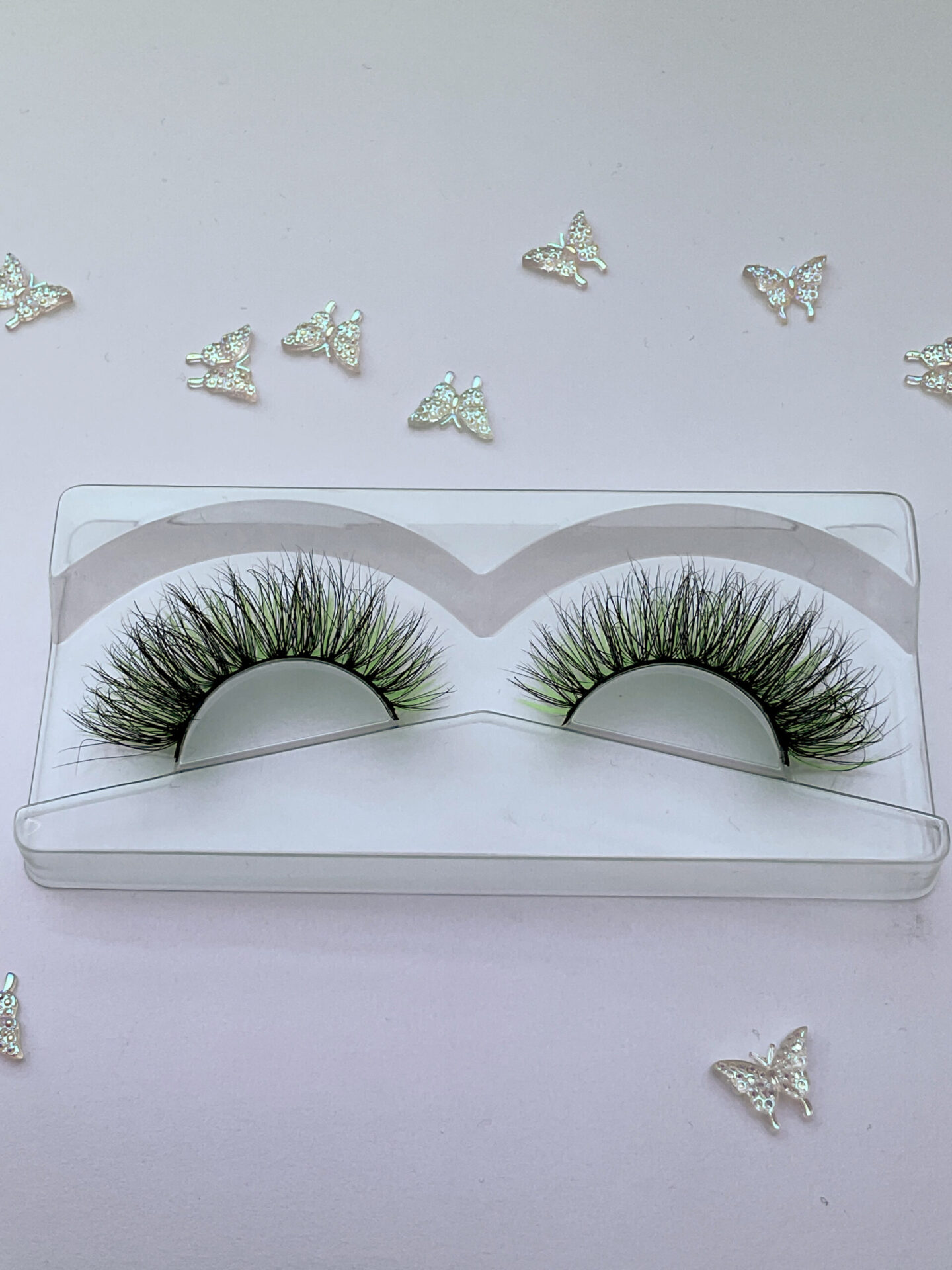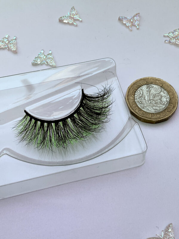 This is Eden. She is a really cool layered black and green 15-20mm false lash, slightly shorter in the inner corner, with lots of drama yet very light on the eye.