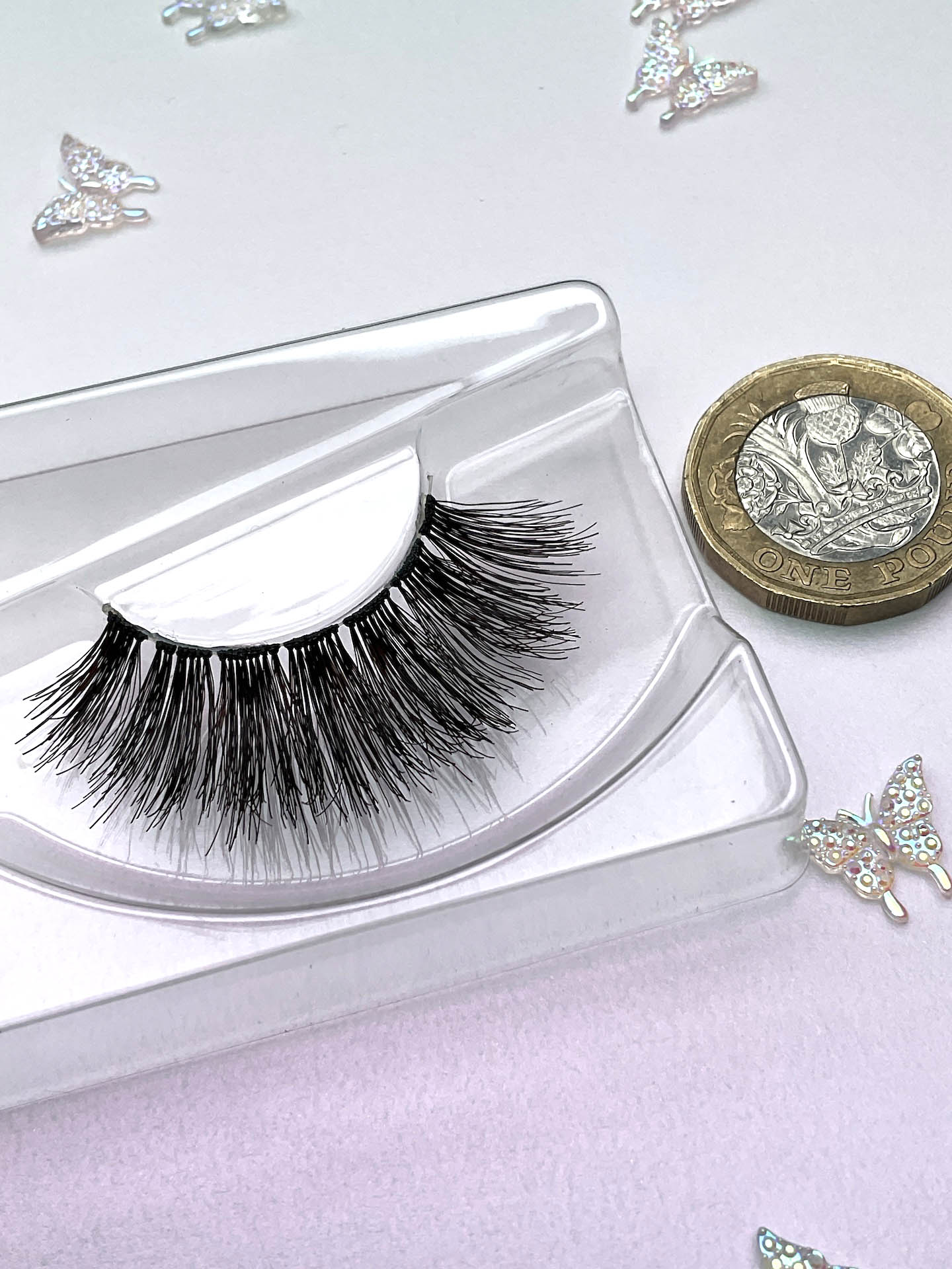 These are one pair of 15-20mm false eyelashes. Synthetic hair, hand tied on a clear lash band.