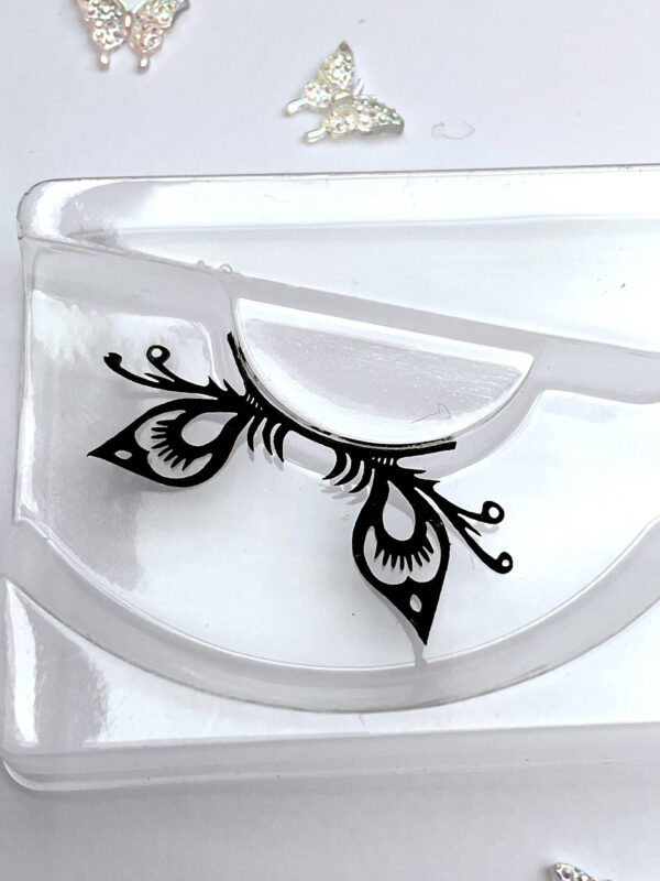 She gives quite an arty look when worn by itself, you can wear her as she comes, or cut one lash to wear as wings on either eye, with another lash or as is. This would give you two pairs of lashed in one! Super cool!