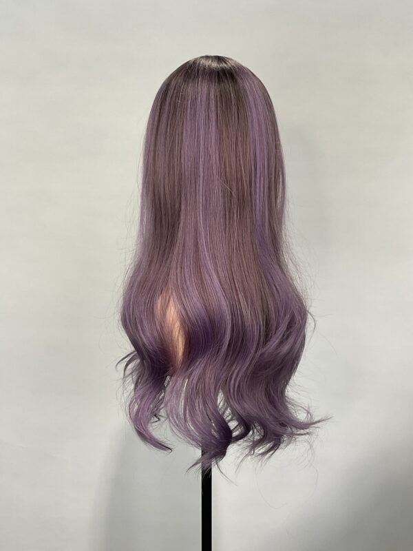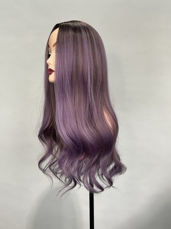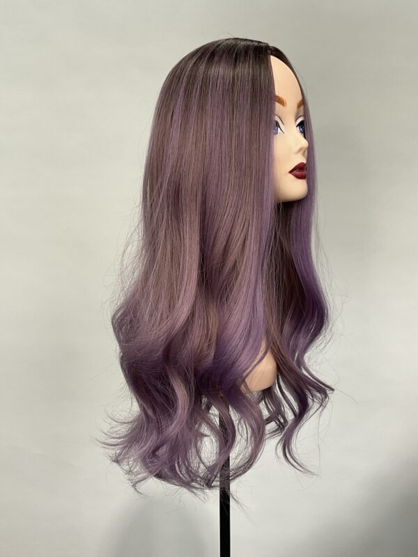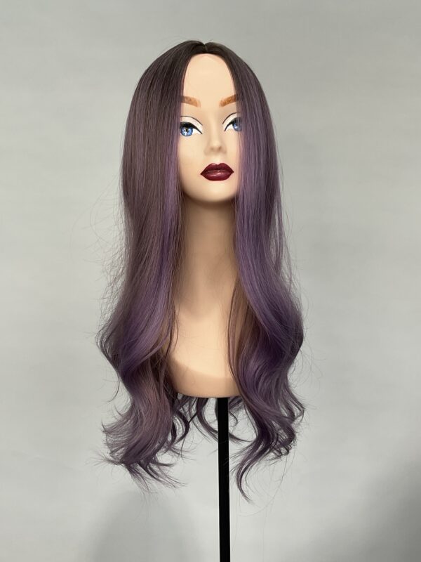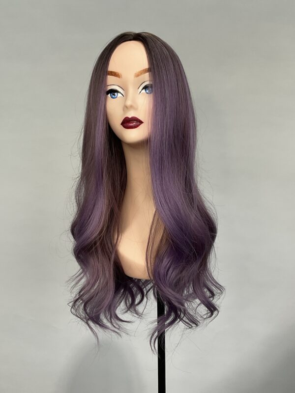 She is an ombre light brown and light purple, about 22-24 inches, a hard front wig with lots of potential.
