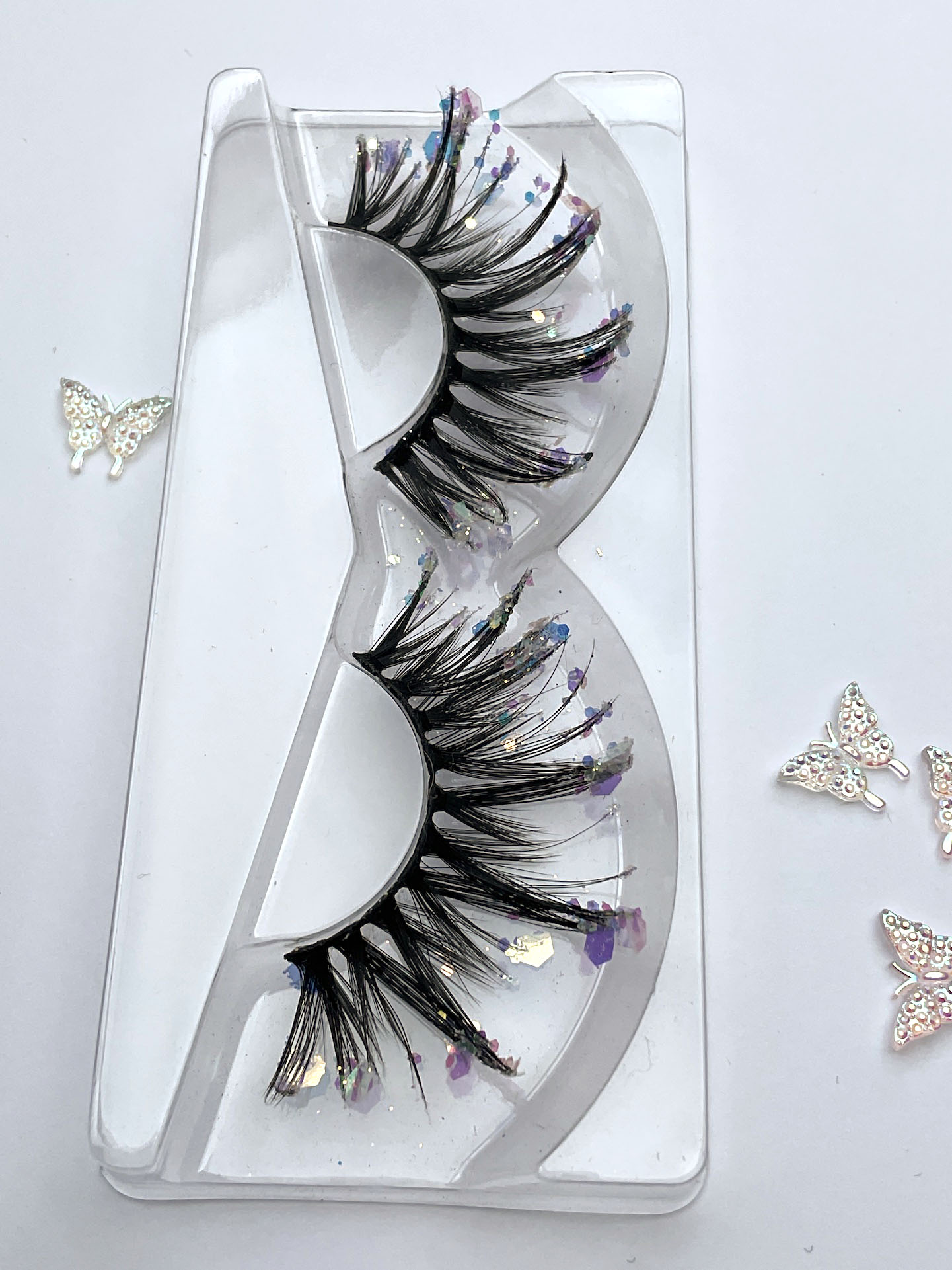 Icy Lilac Glitter Coated Jumbo False Lashes