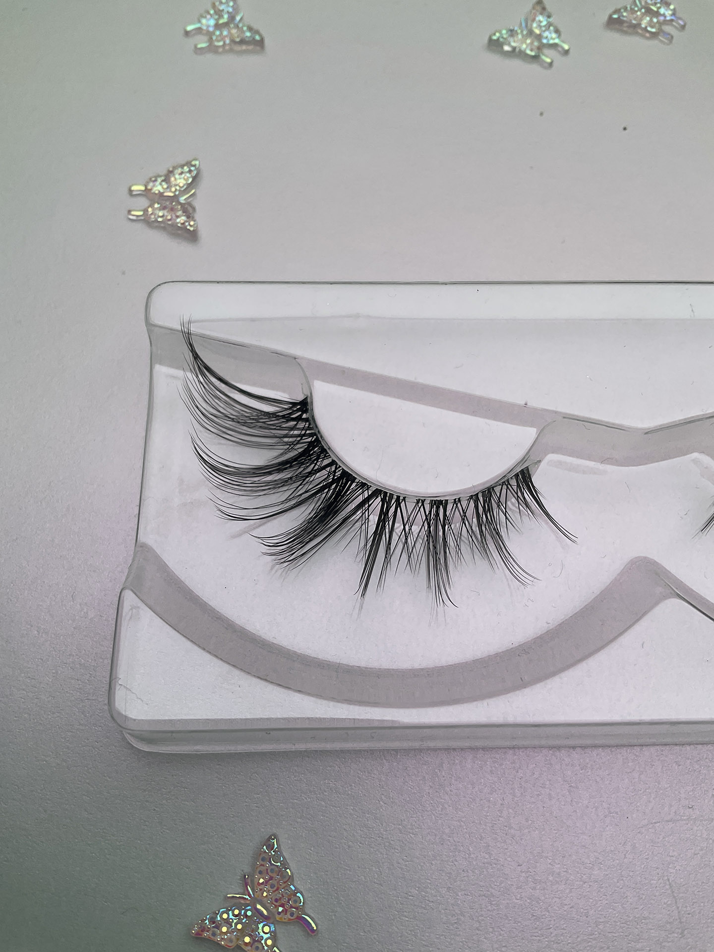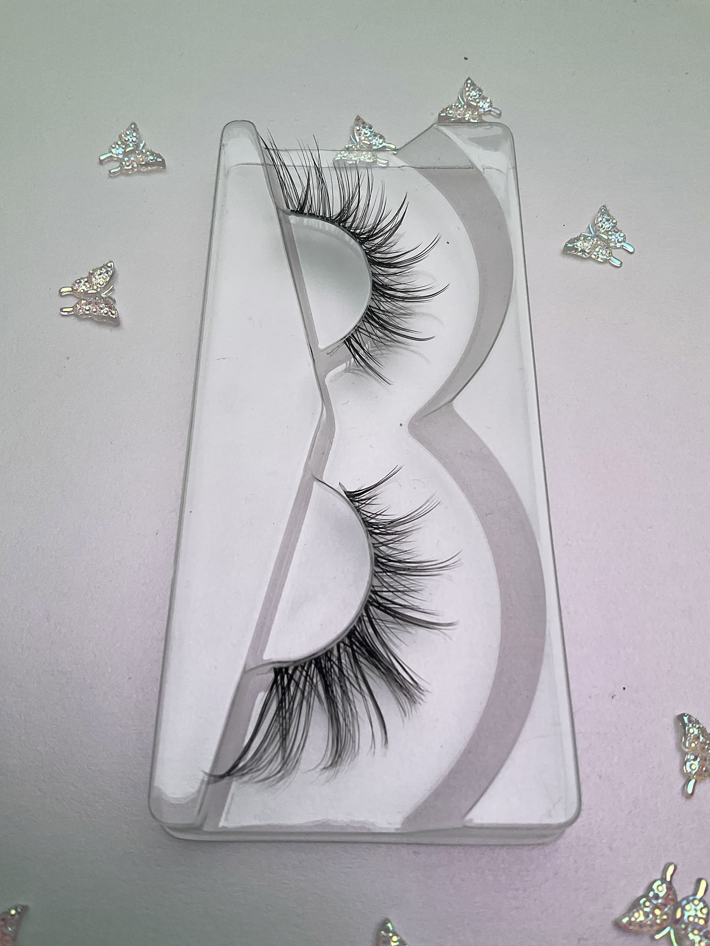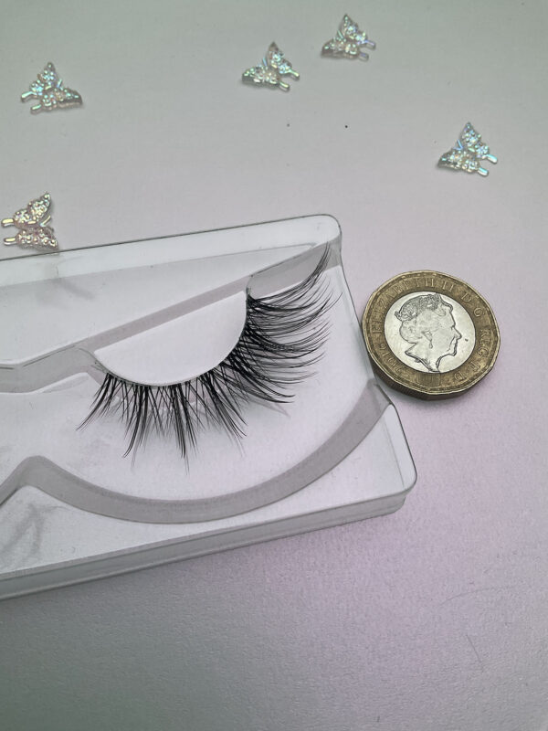 Synthetic hair, hand tied on a transparent lash band. Glue not included, however both clear and black eyelash adhesive is available in my store!