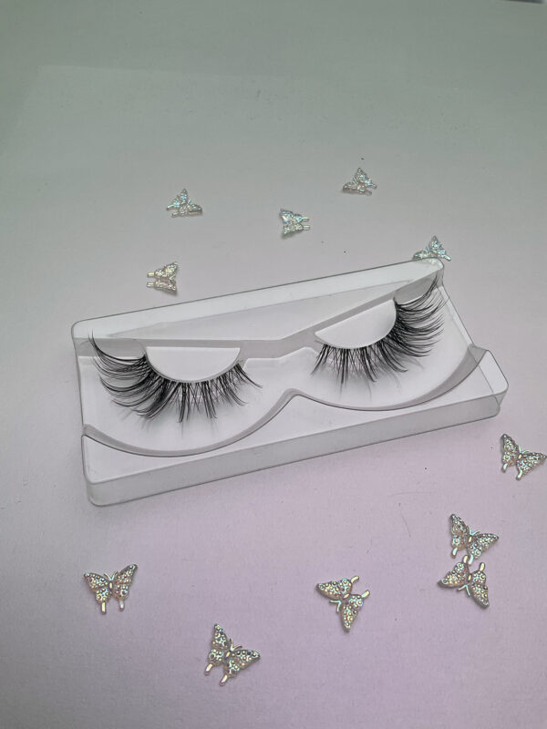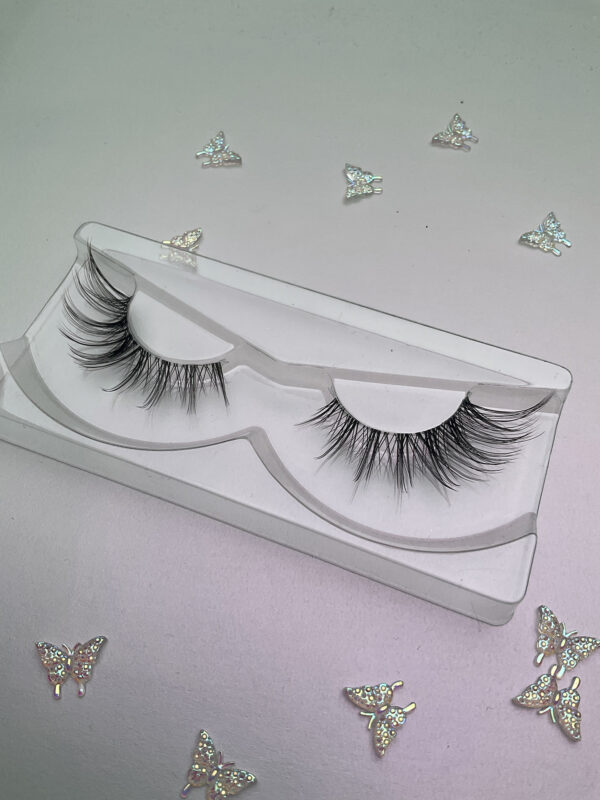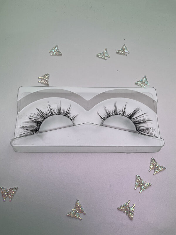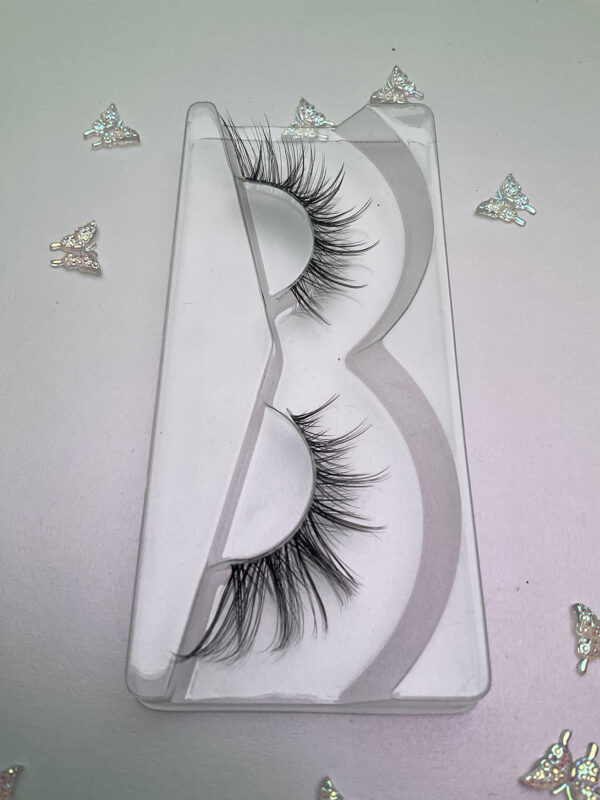 This is Jennifer. She is a more natural looking black lash on an invisible lash band. This is the “Russian wing” style lash, full drama on the outer edge with just an infill look in the inner part, a great alternative to lash extensions.