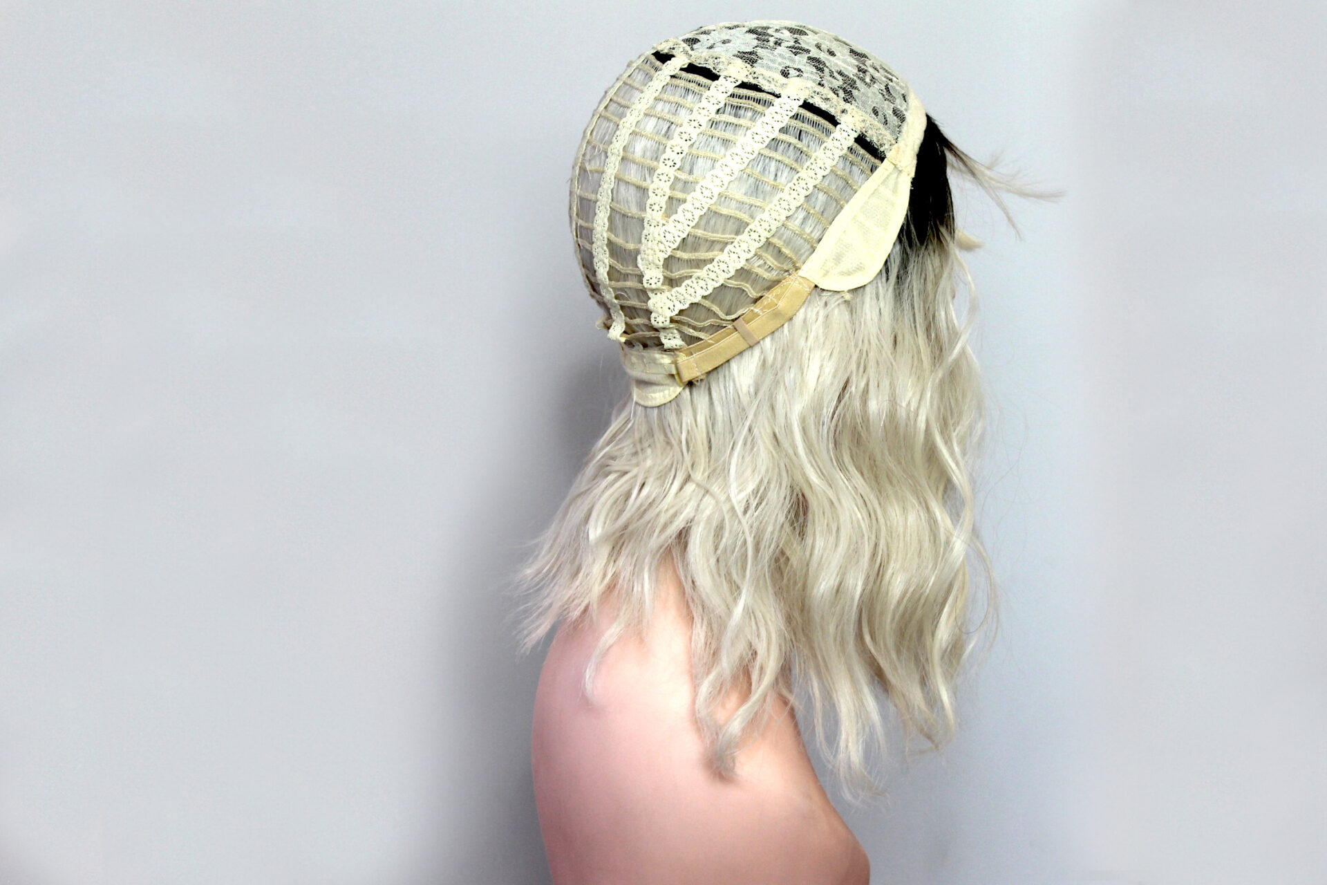 Medium sized cap (average cap size, approx 22.75 inches circumference) with 3 combs and adjustable straps in the neck. (Adjustable from 22 to 23 inches)