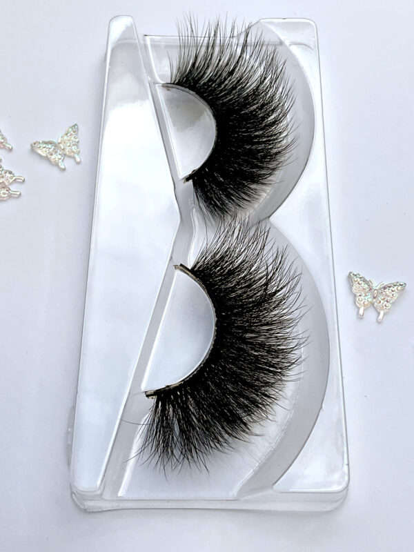 These are one pair of 25mm false eyelashes, in black. Synthetic hair, hand tied.