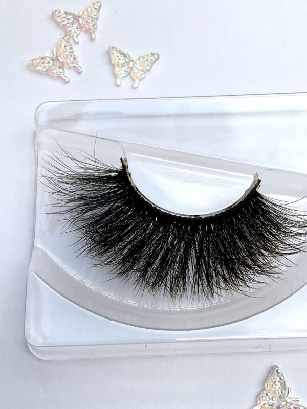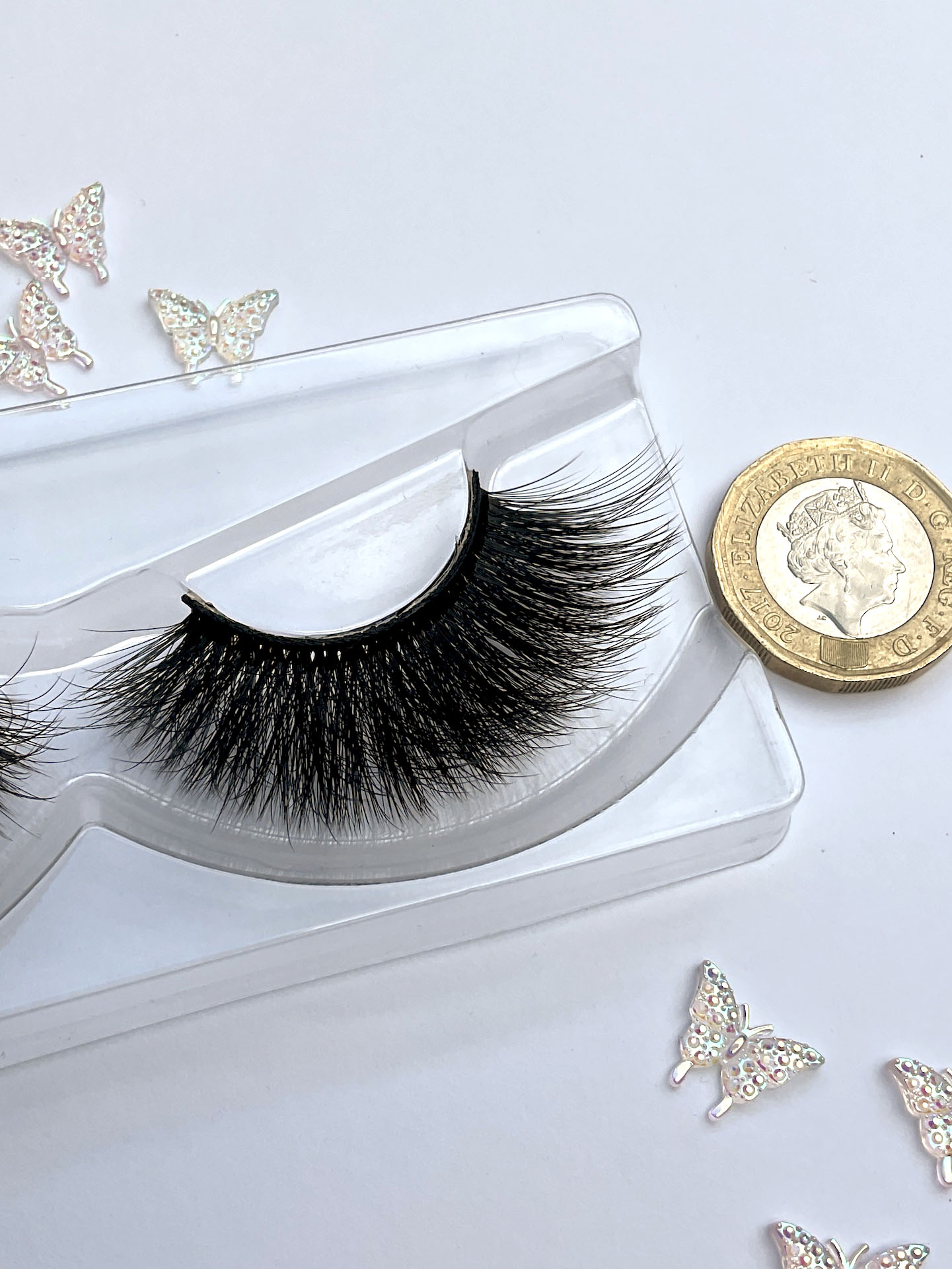 This is Michelle. She is a really full and bushy 3D lash. 3D means the hairs stand to attention at different levels, almost as if they were stacked, the fullness is difficult to capture on camera. This particular lash has a layer of shorter lash fibres at the bottom and longer fibres on top. Very fluffy! Also very light on the eye.