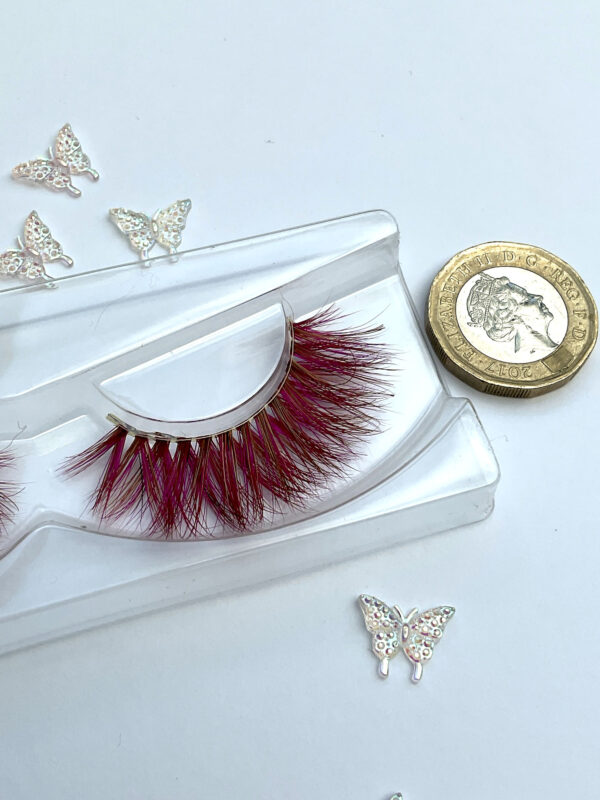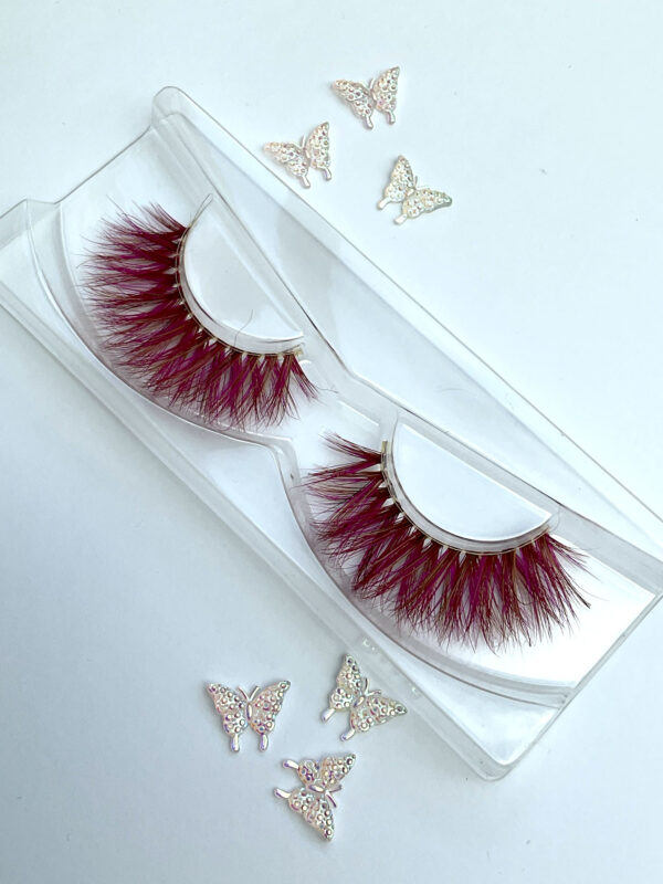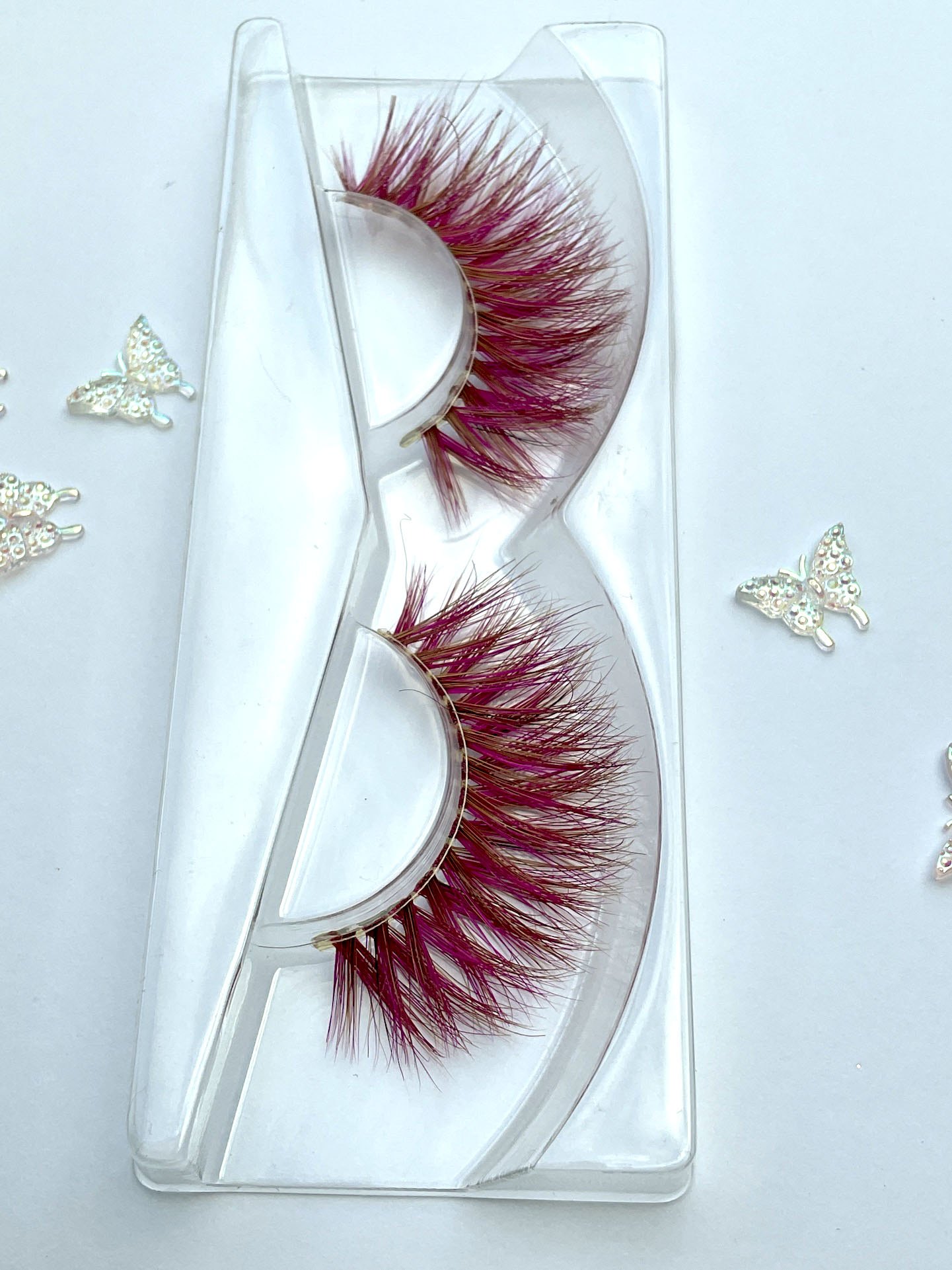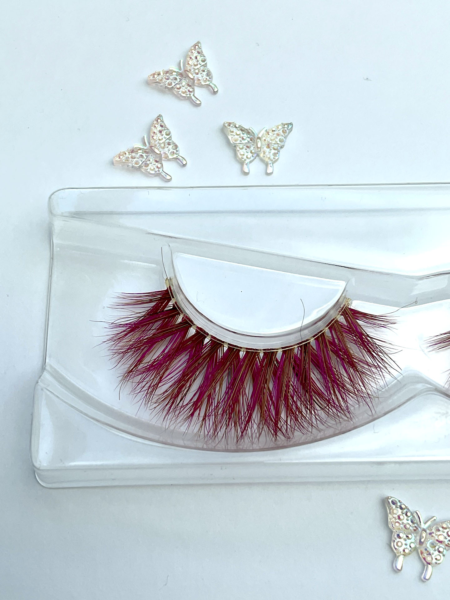 This is Miley. She is a fun and flirty 15mm lash in a magenta pink and tan mix.