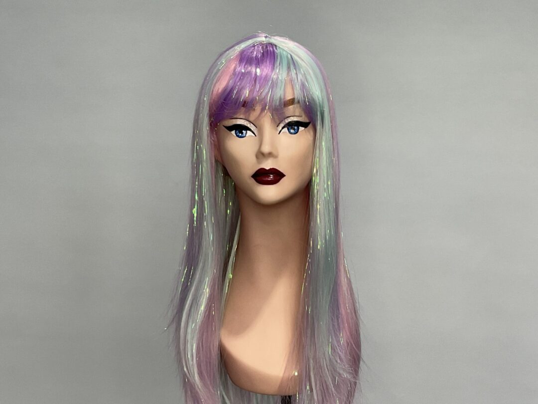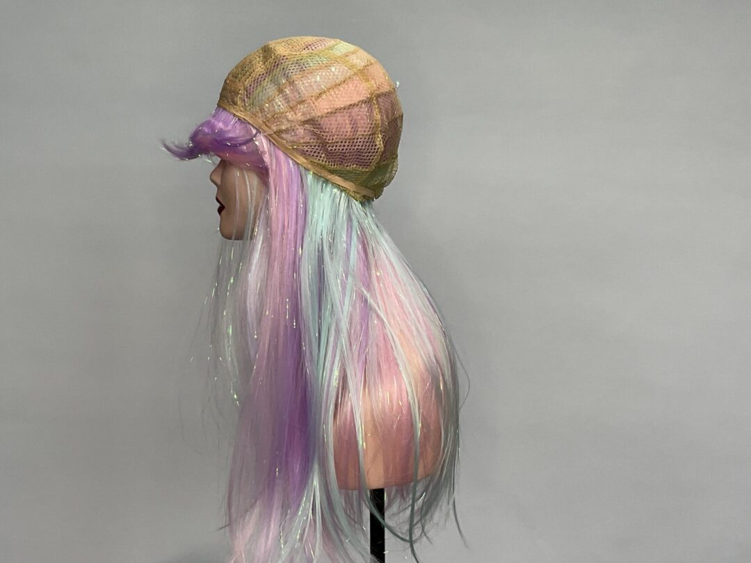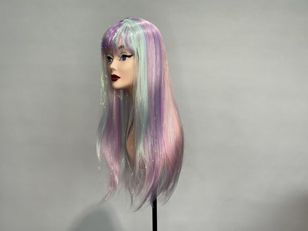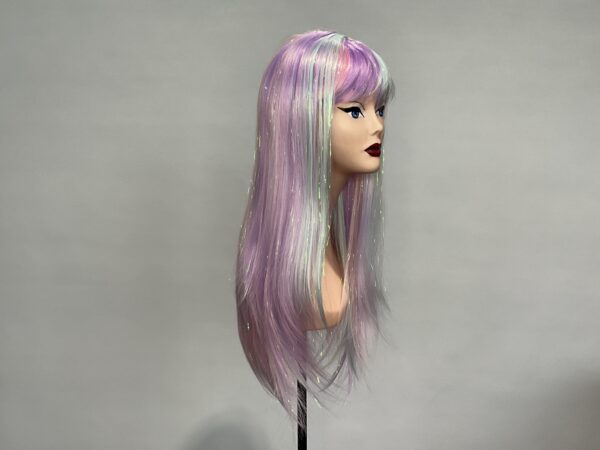 “Party” Pastel Pink and Lilac Hard Front Wig w/Tinsel
