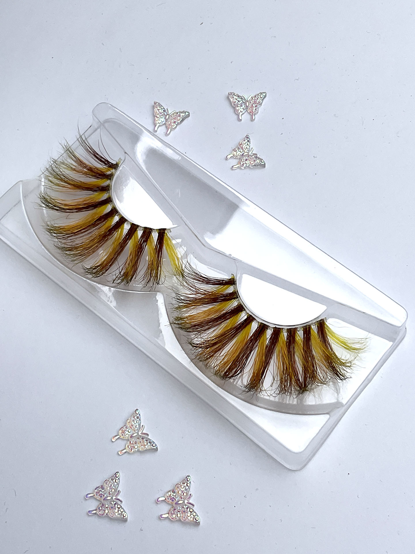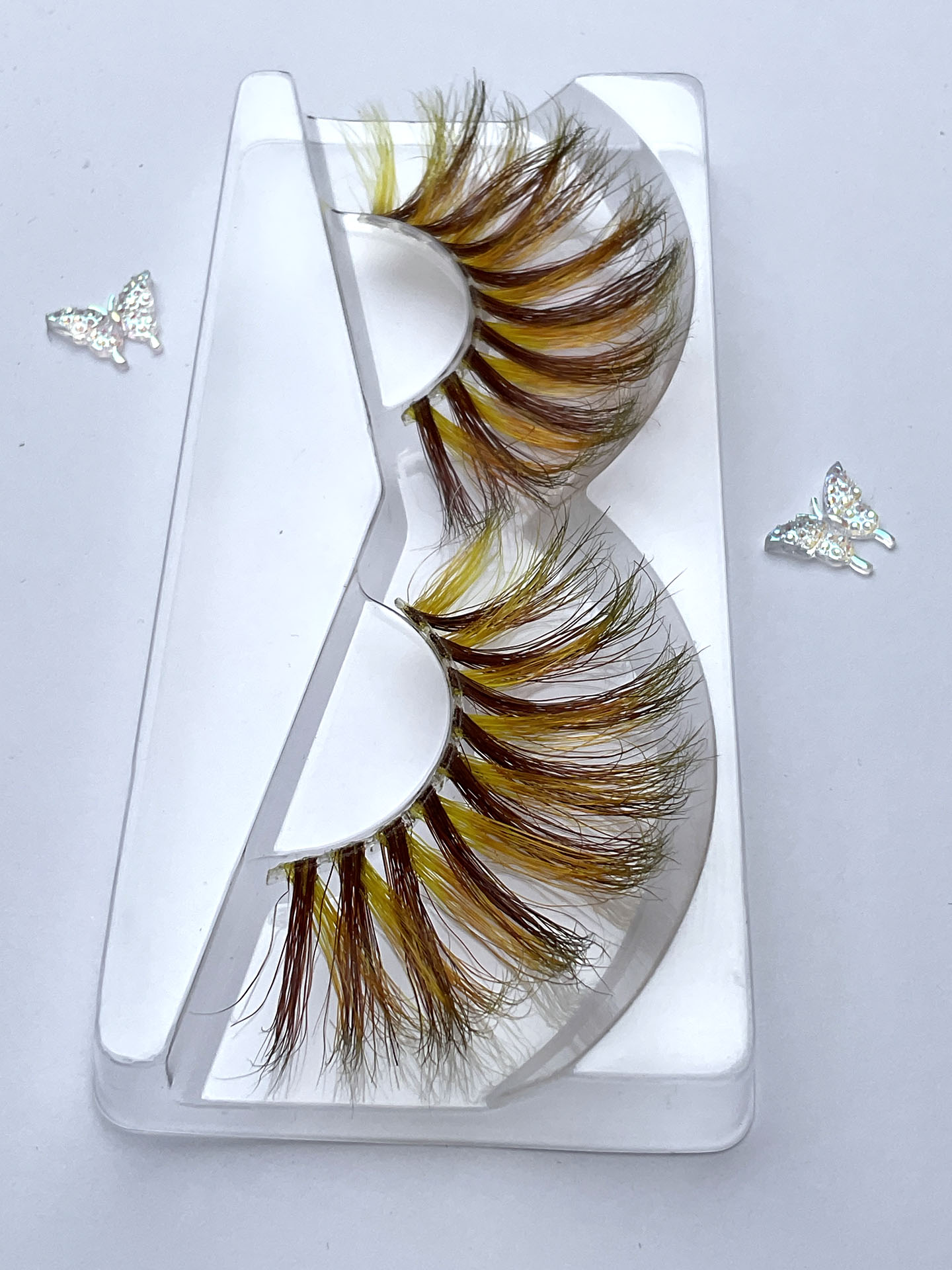 Pineapple Yellow and Tan Brown Jumbo False Lashes 25mm