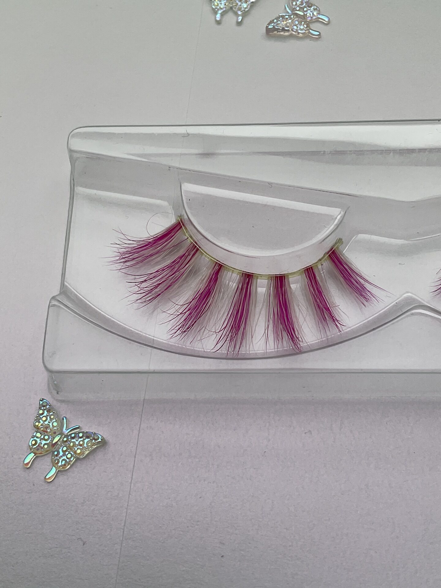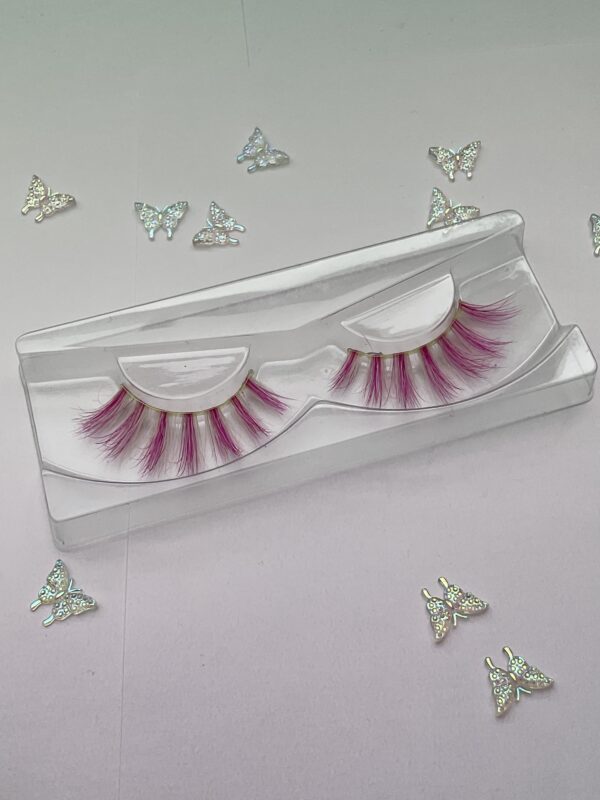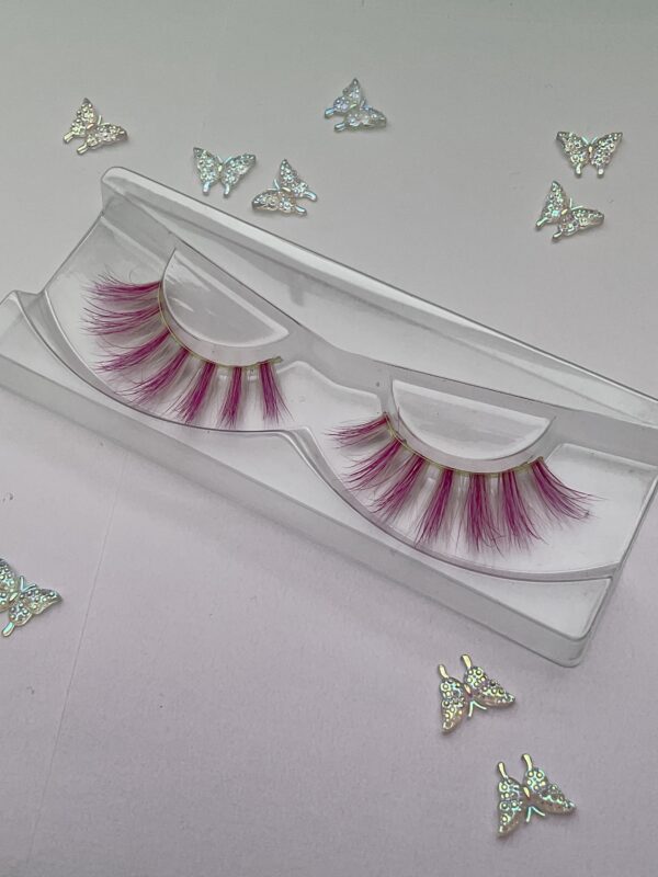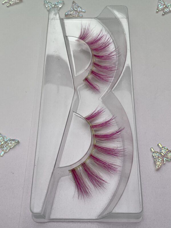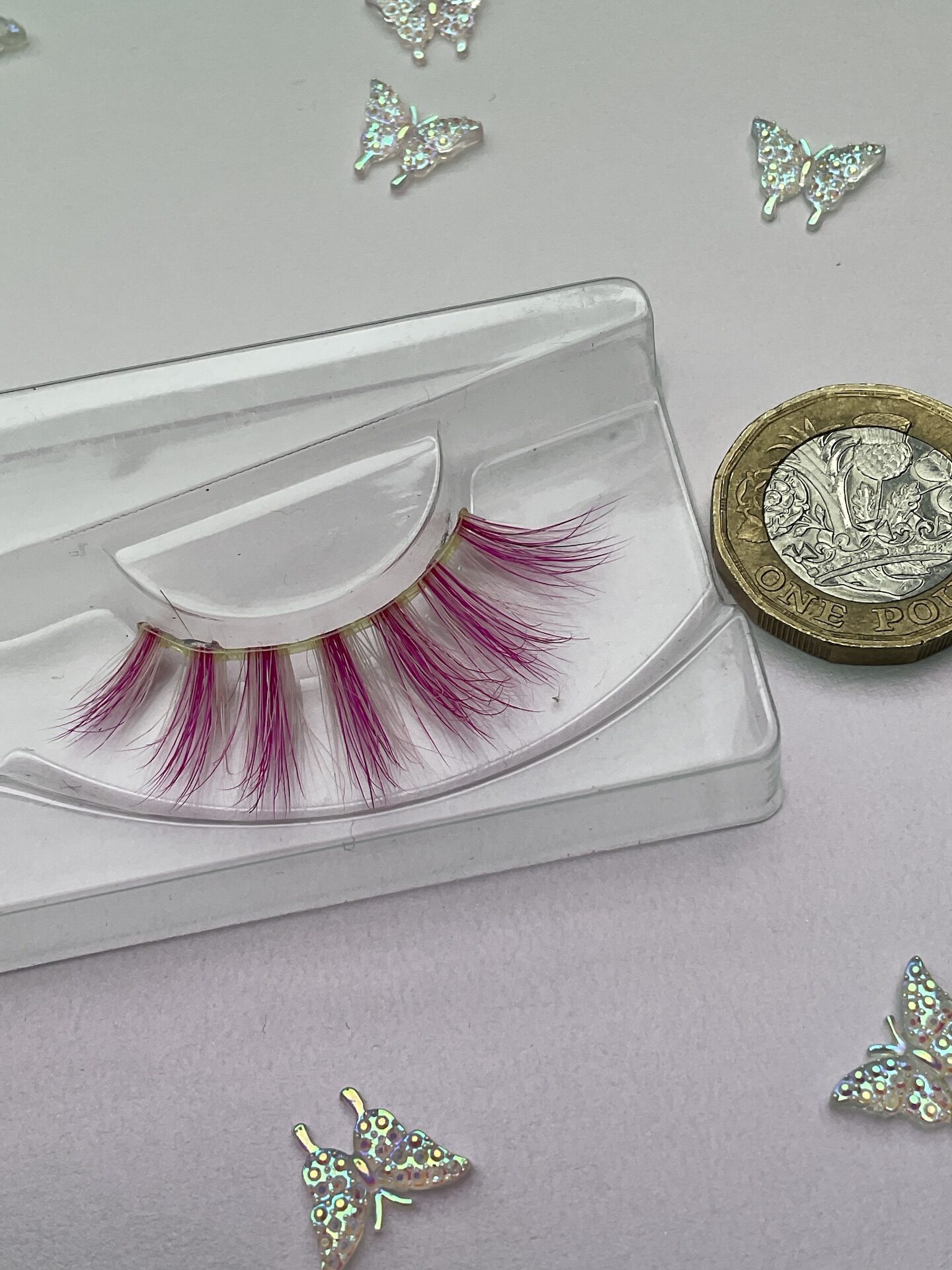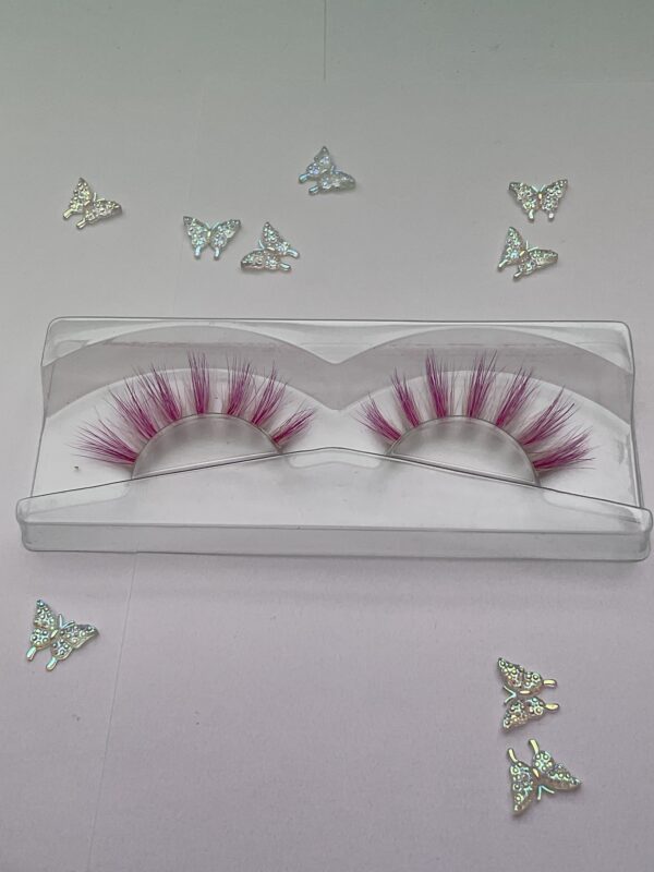 This is Posey. She is one pair of fabulous 10-15mm false eyelashes, in pale and dark pink stripes. Almost like a candy cane.
