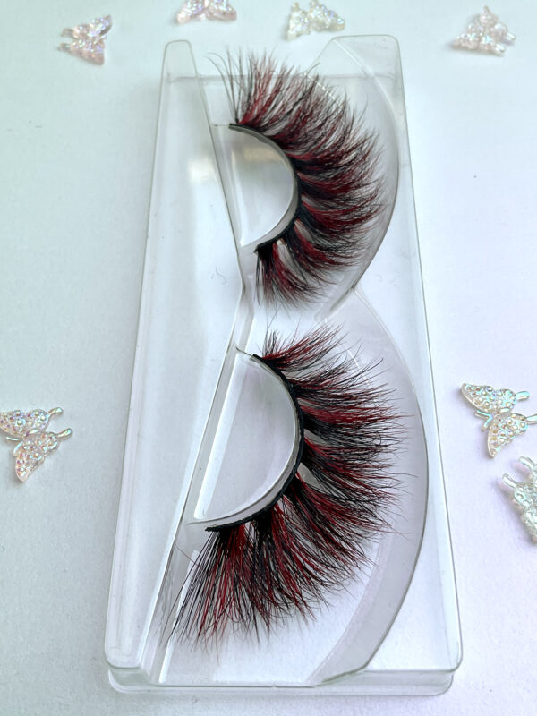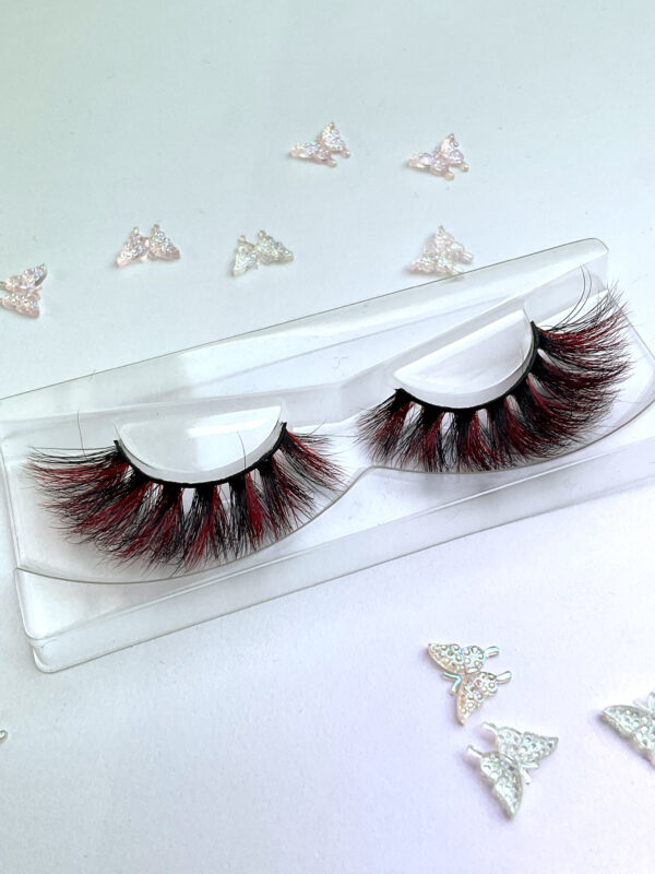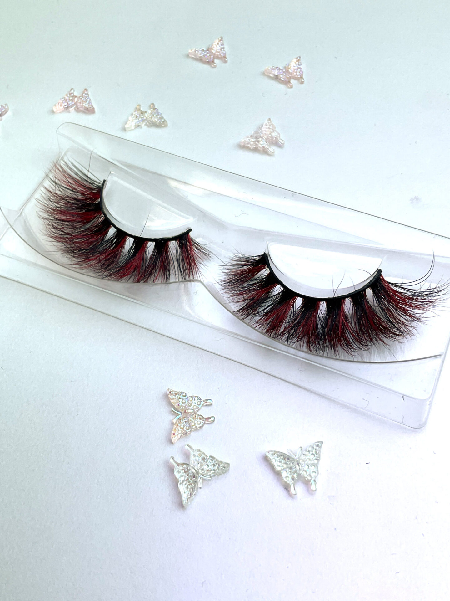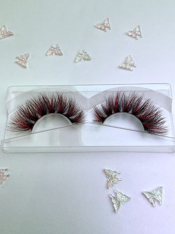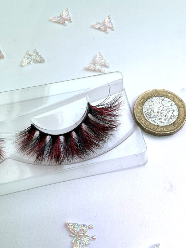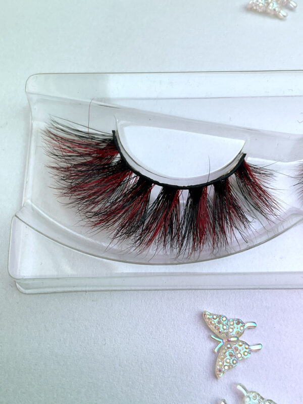 This is Rita. She is one pair of fabulous false eyelashes, in black and red crisscrossed fibres.