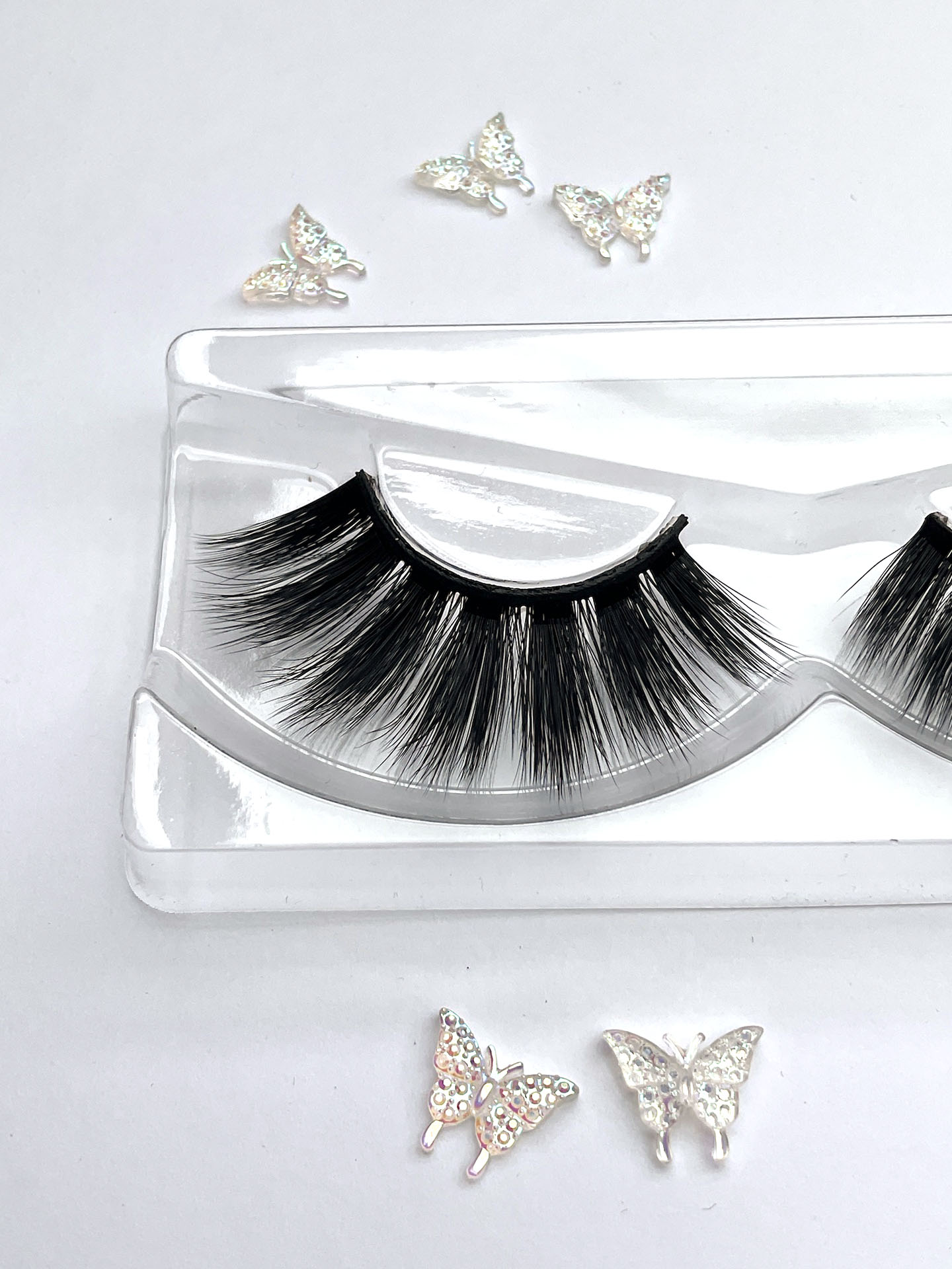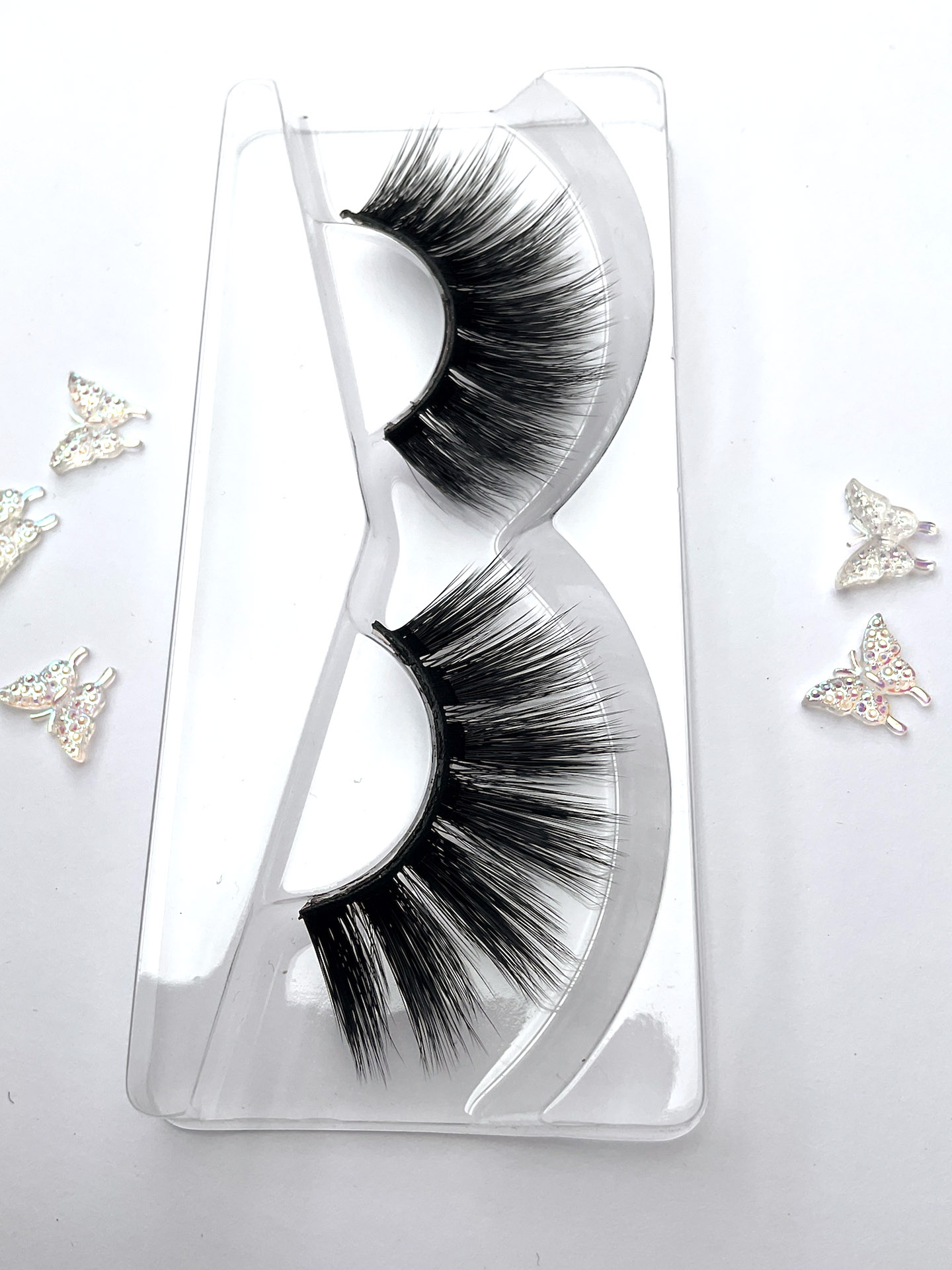 This is Sasha. She is a cute shorter set of lashes, but still thick and 3D bushy! They are great for stacking, with itself or with a different model!