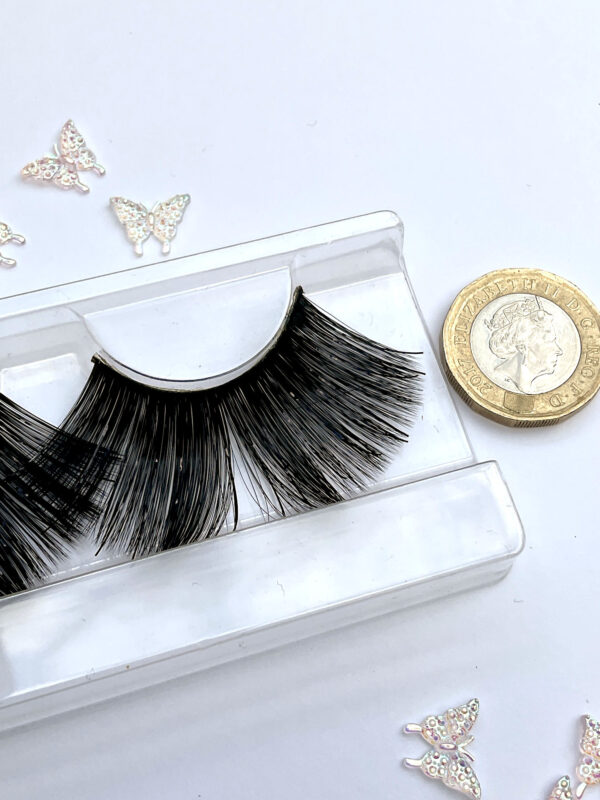These are one pair of 20mm false eyelashes. Hand tied, on a black lash band. Glue not included, however both clear and black eyelash adhesive is available in my store!
