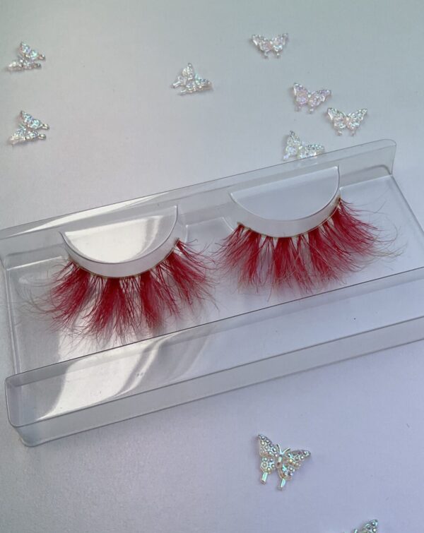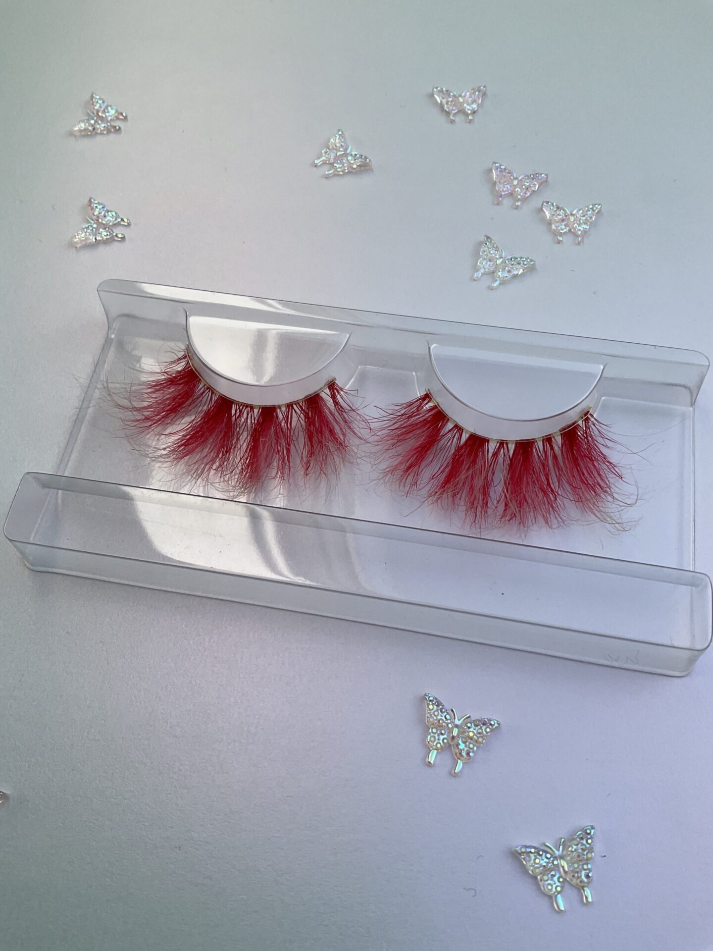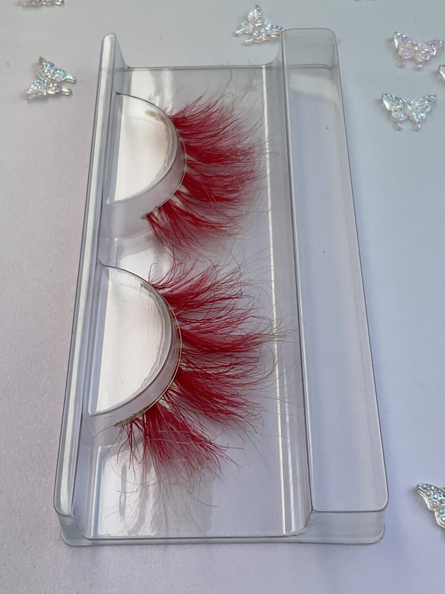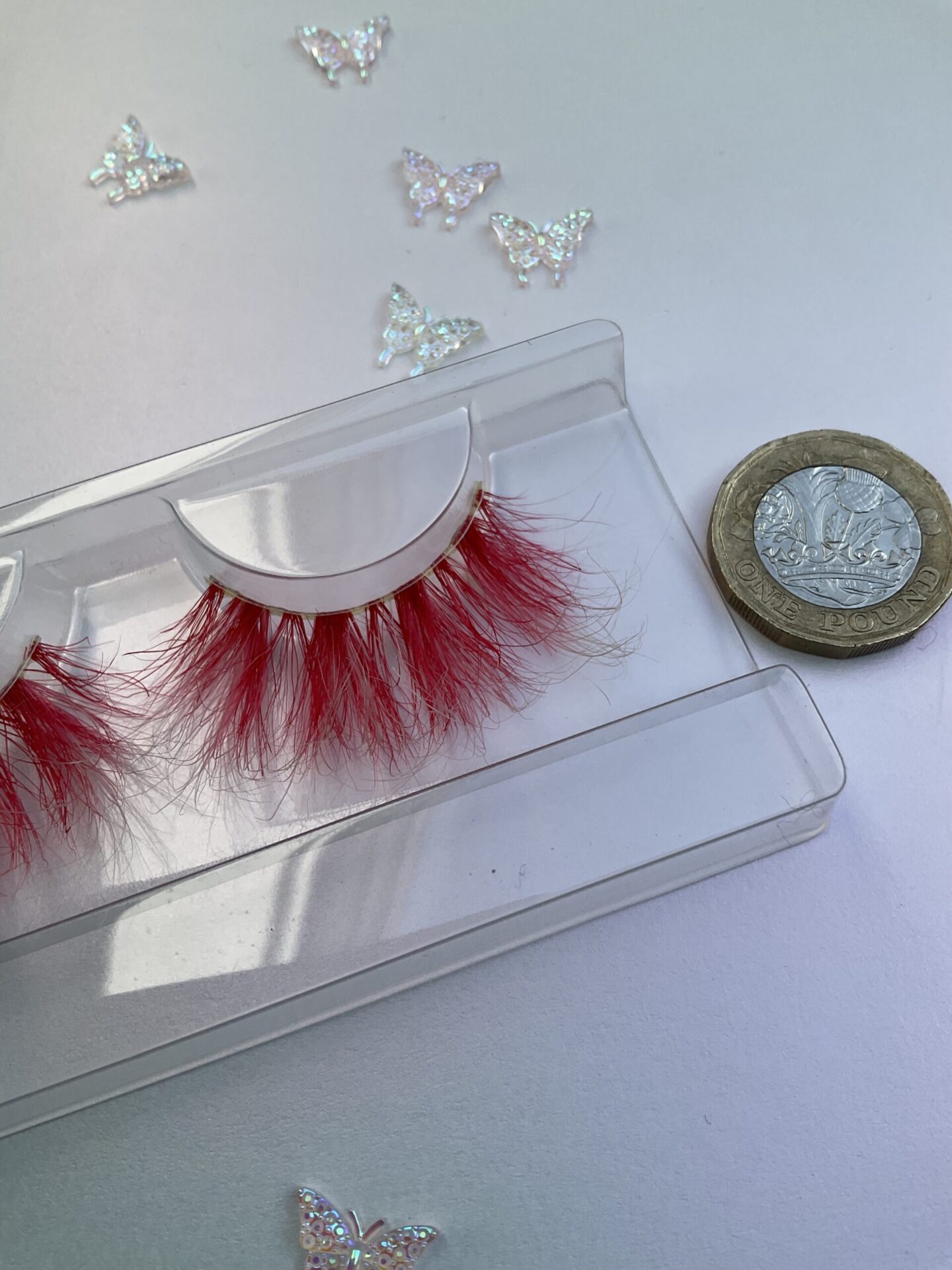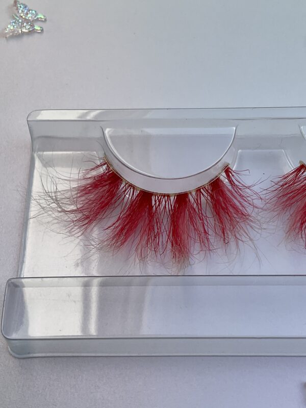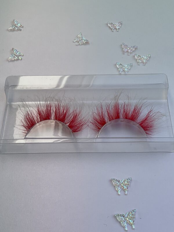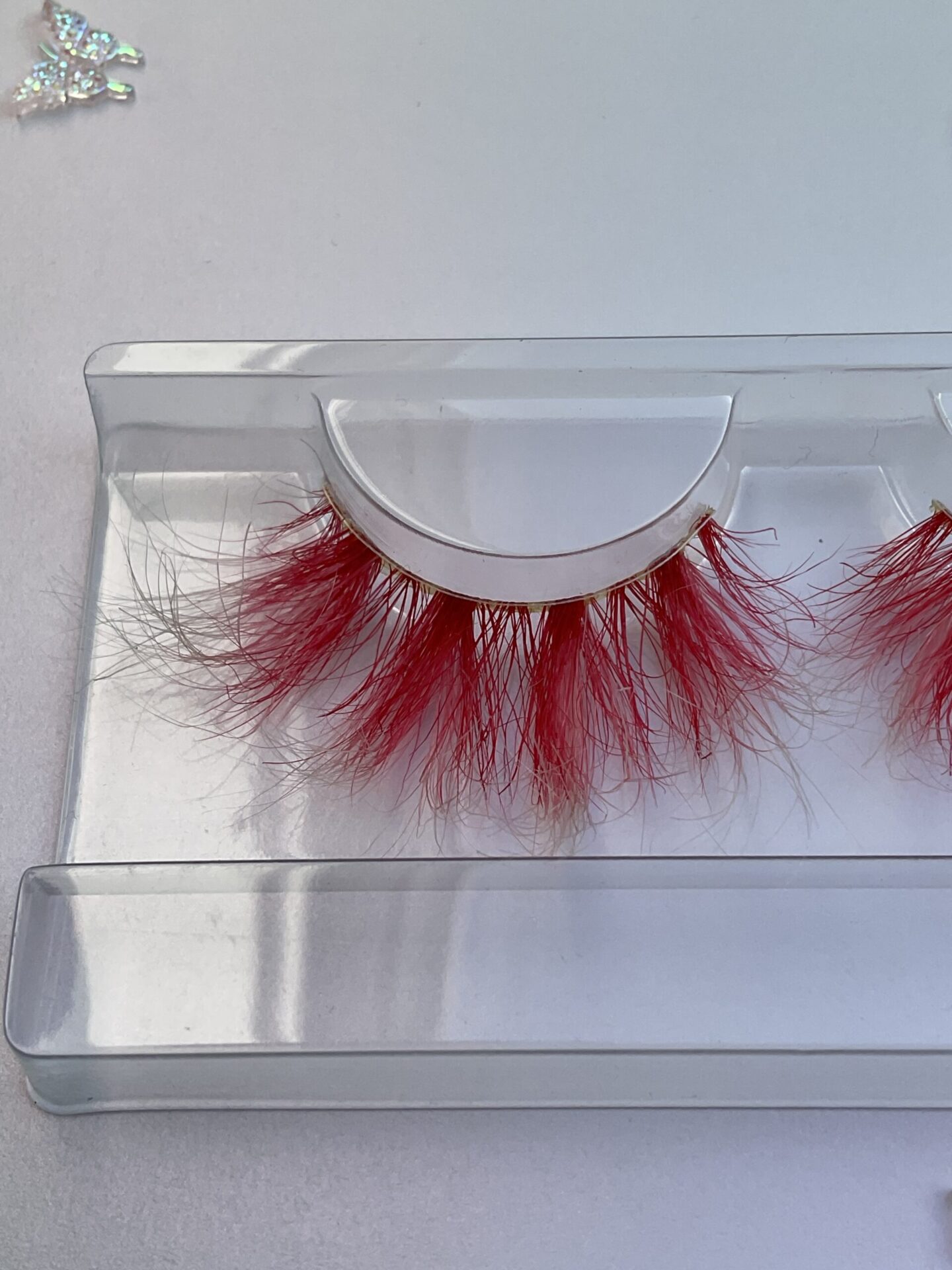 This is Stina. She is one bright pair of fabulous false jumbo lashes in bright red with white tips, like a candy cane.