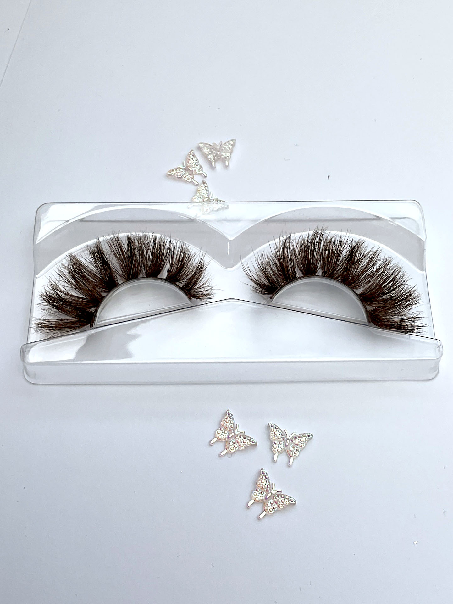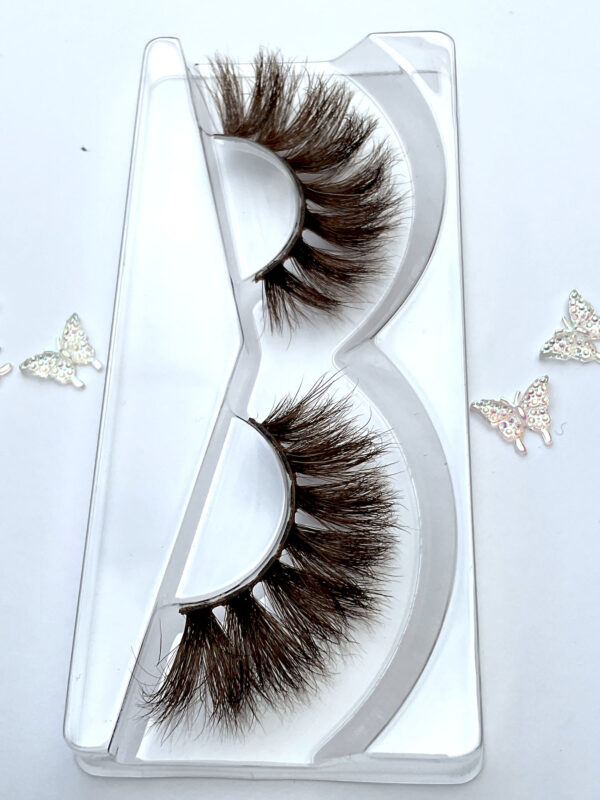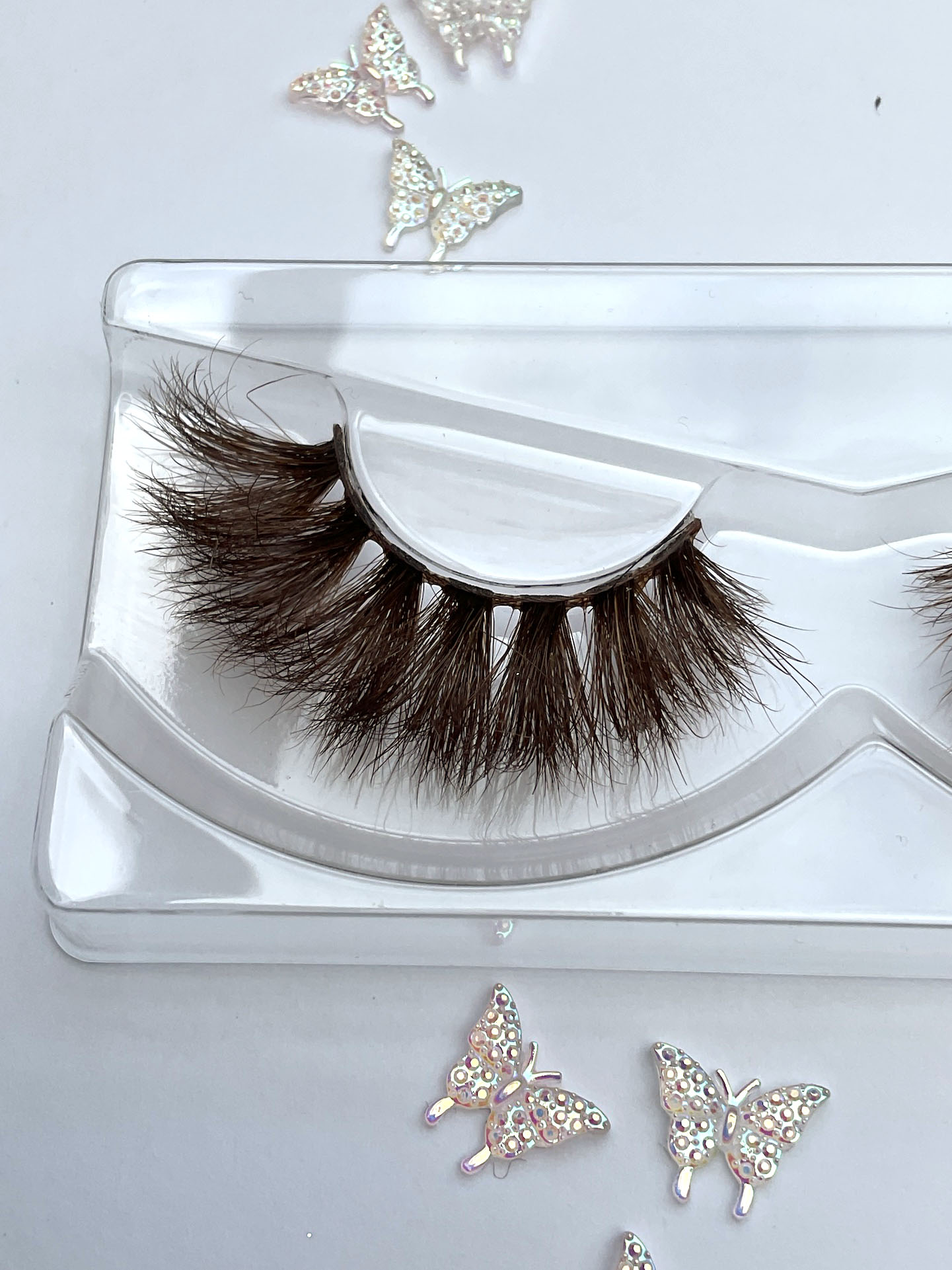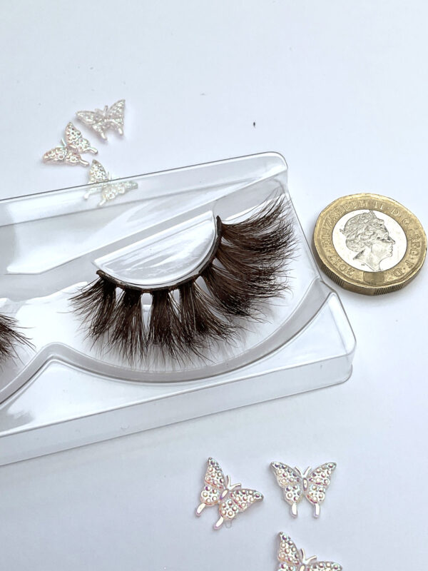 She is a pretty thick and full chocolate brown lash, a great contrast lash, fab worn with dark or light brown hair.